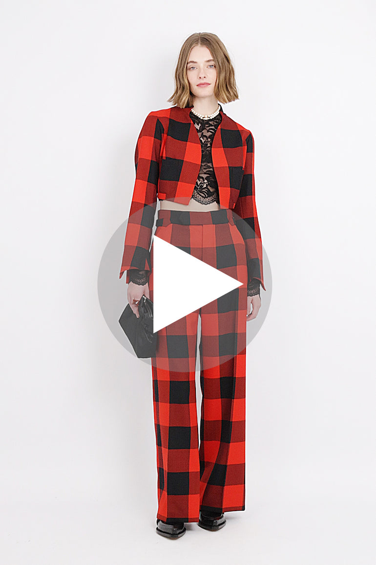 Designed without lapels and a curved hem, the CJ Cropped jacket is tailored from checked wool, inspired by our archival men's suits seen throughout past collections.