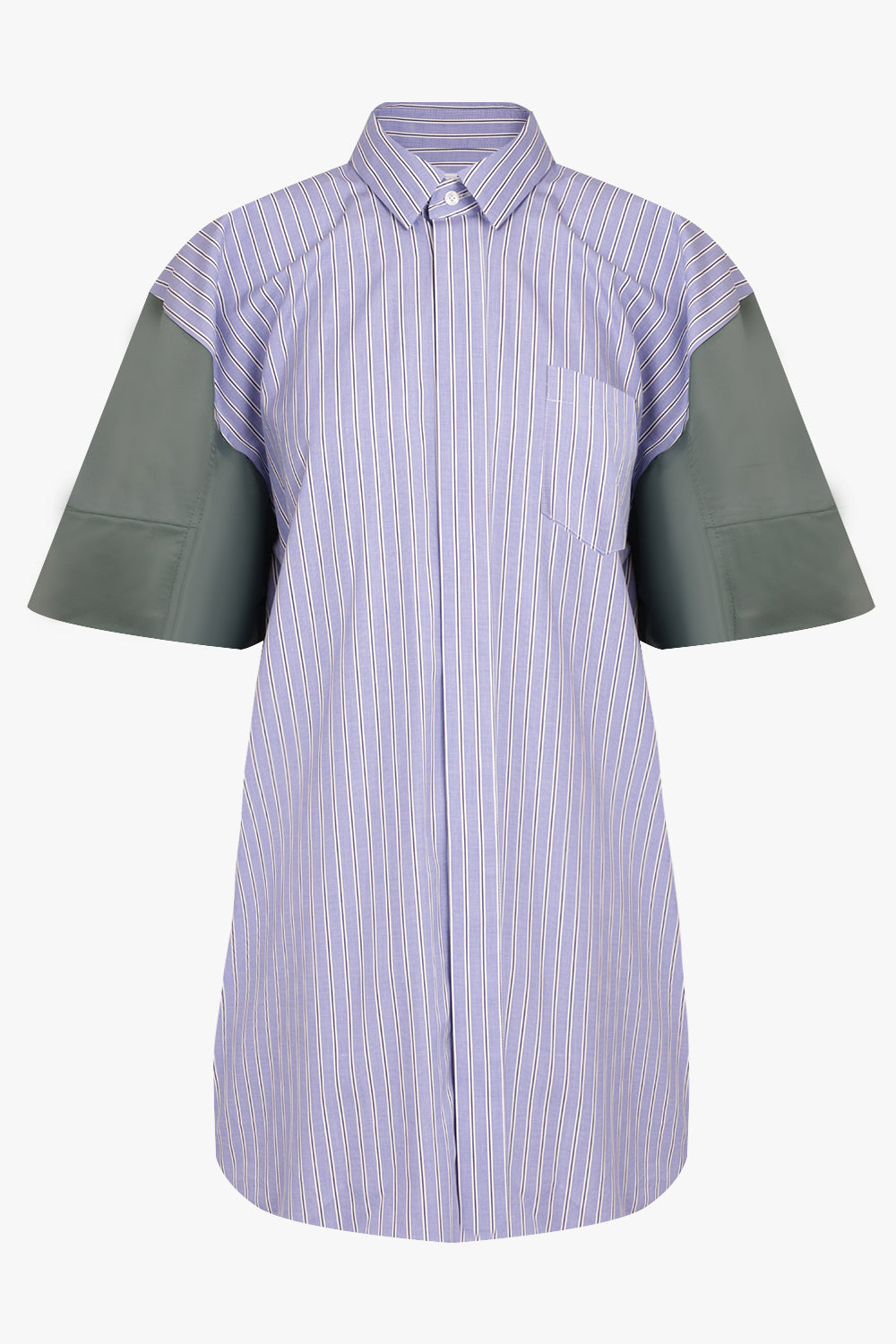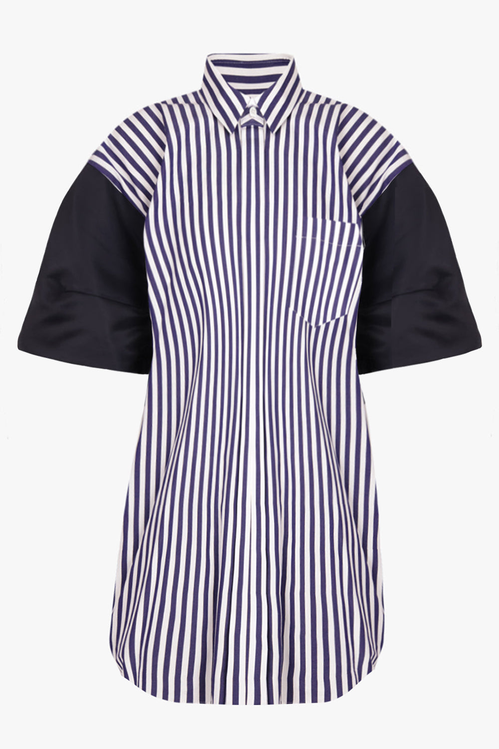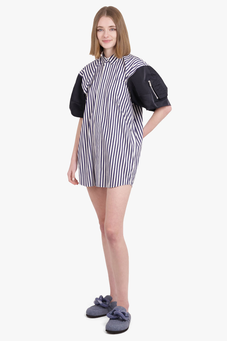 SACAI RTW Contrast Balloon S/S Midi Stripe Shirt Dress | Navy/White