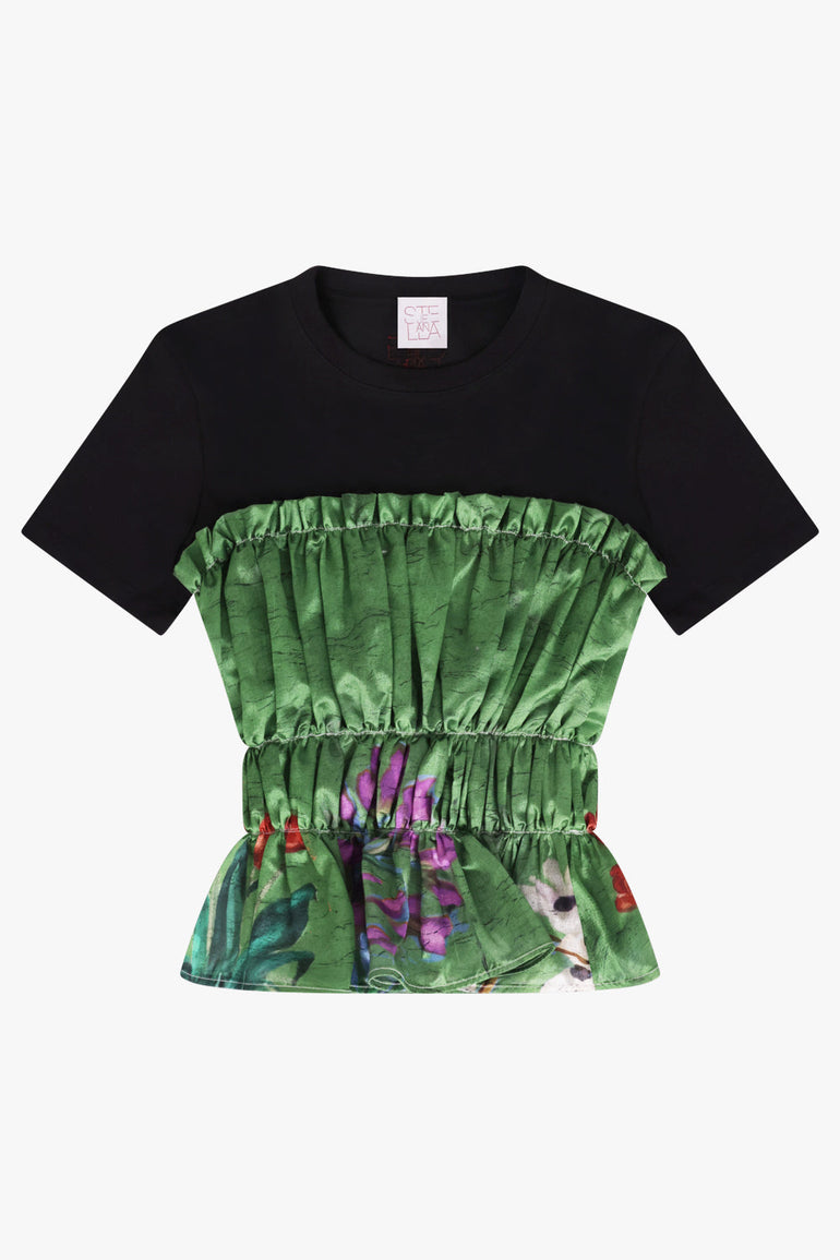PICNIC PRINT BODICE T-SHIRT BLACK/GREEN