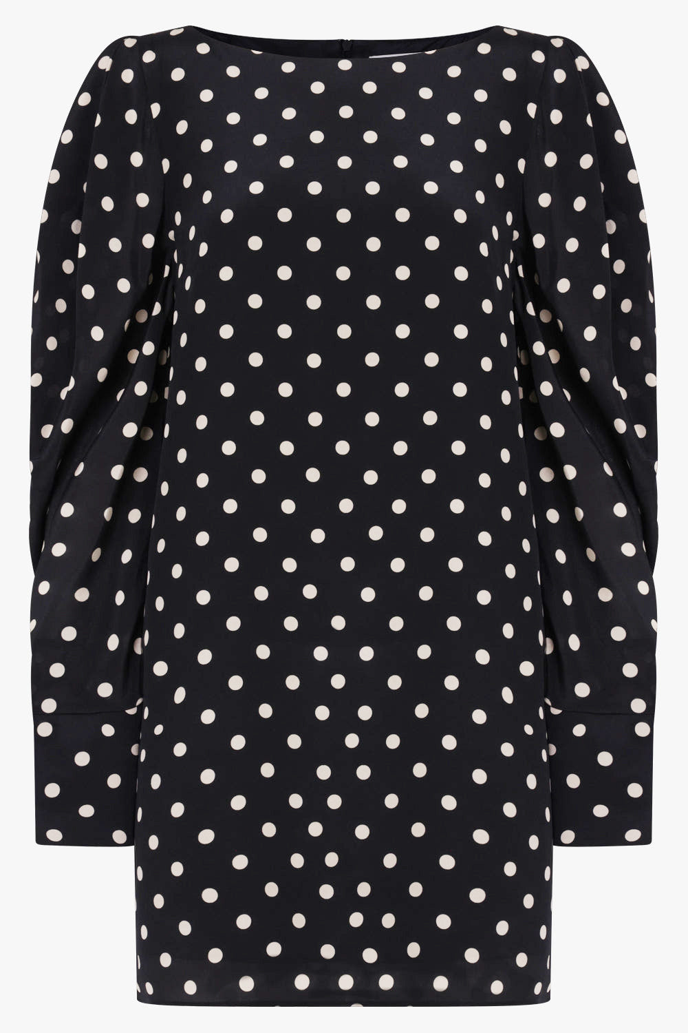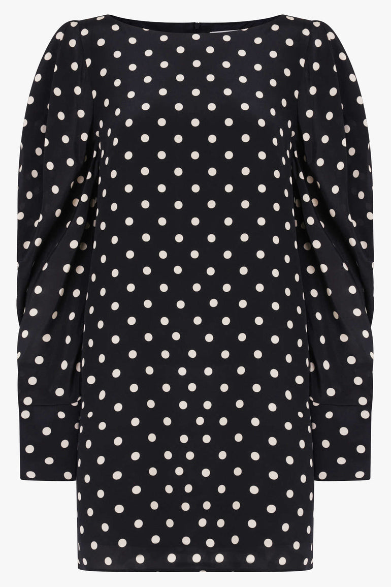 Crepe De Chine Mini Polka Dot Puff Sleeve Dress | Black/White