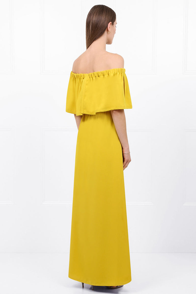 MAISON POI DRESSES FLUID OFF-SHOULDER DRESS YELLOW