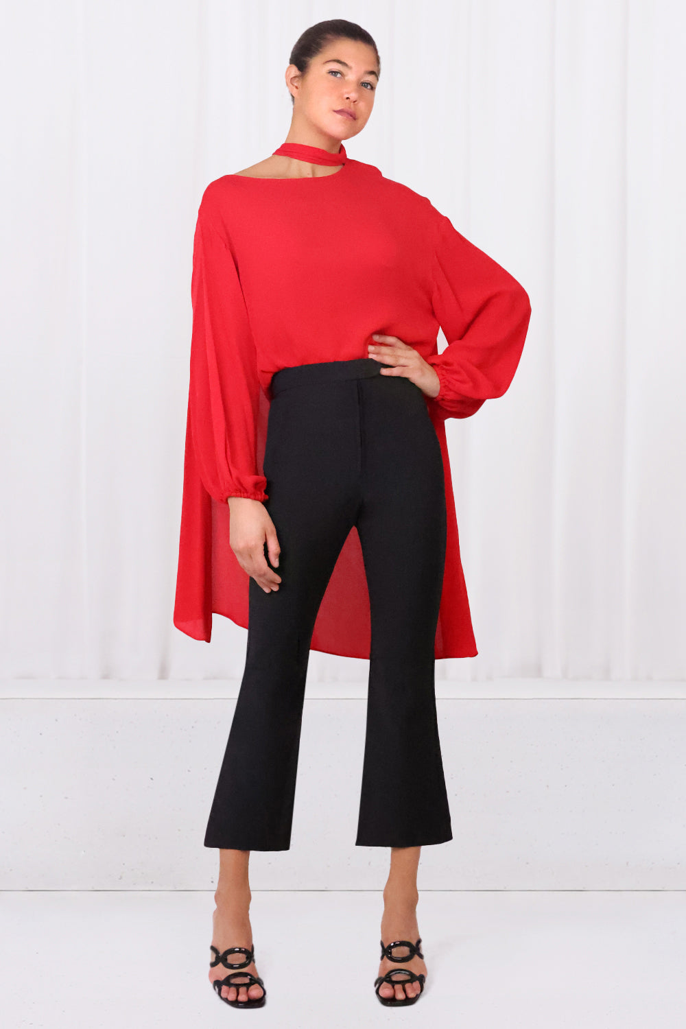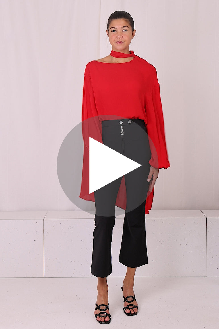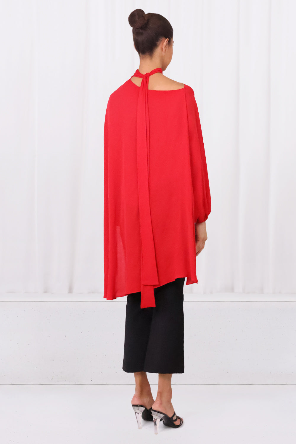 The Valentino Georgette Top in Rosso is fabricated from Crepe de Chine, and is a relaxed fit, shorter at the front, featuring a scarf detailing at the neck.