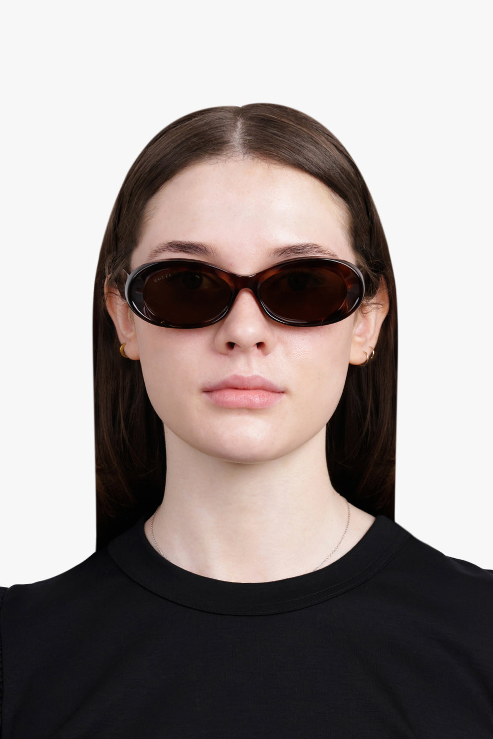 GUCCI ACCESSORIES BROWN / BROWN GG1527S 54 Oval Frame Sunglasses | Havana
