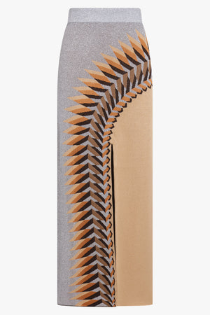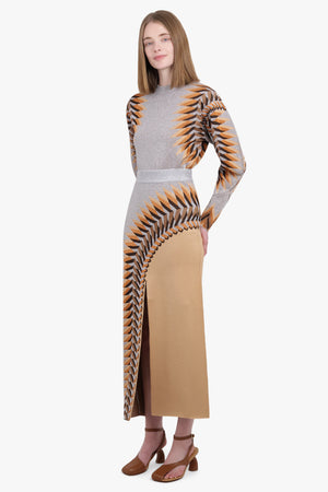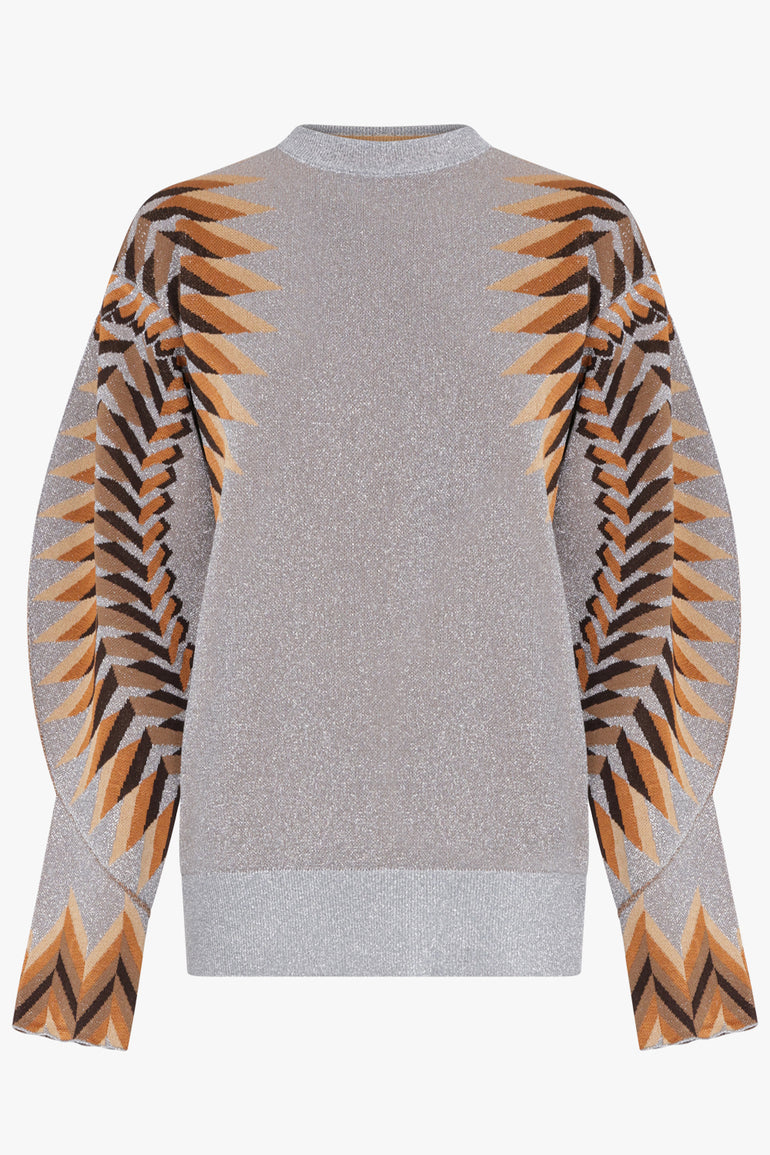 Graphic Print Balloon Sleeve Knit Jumper | Grey/Multi