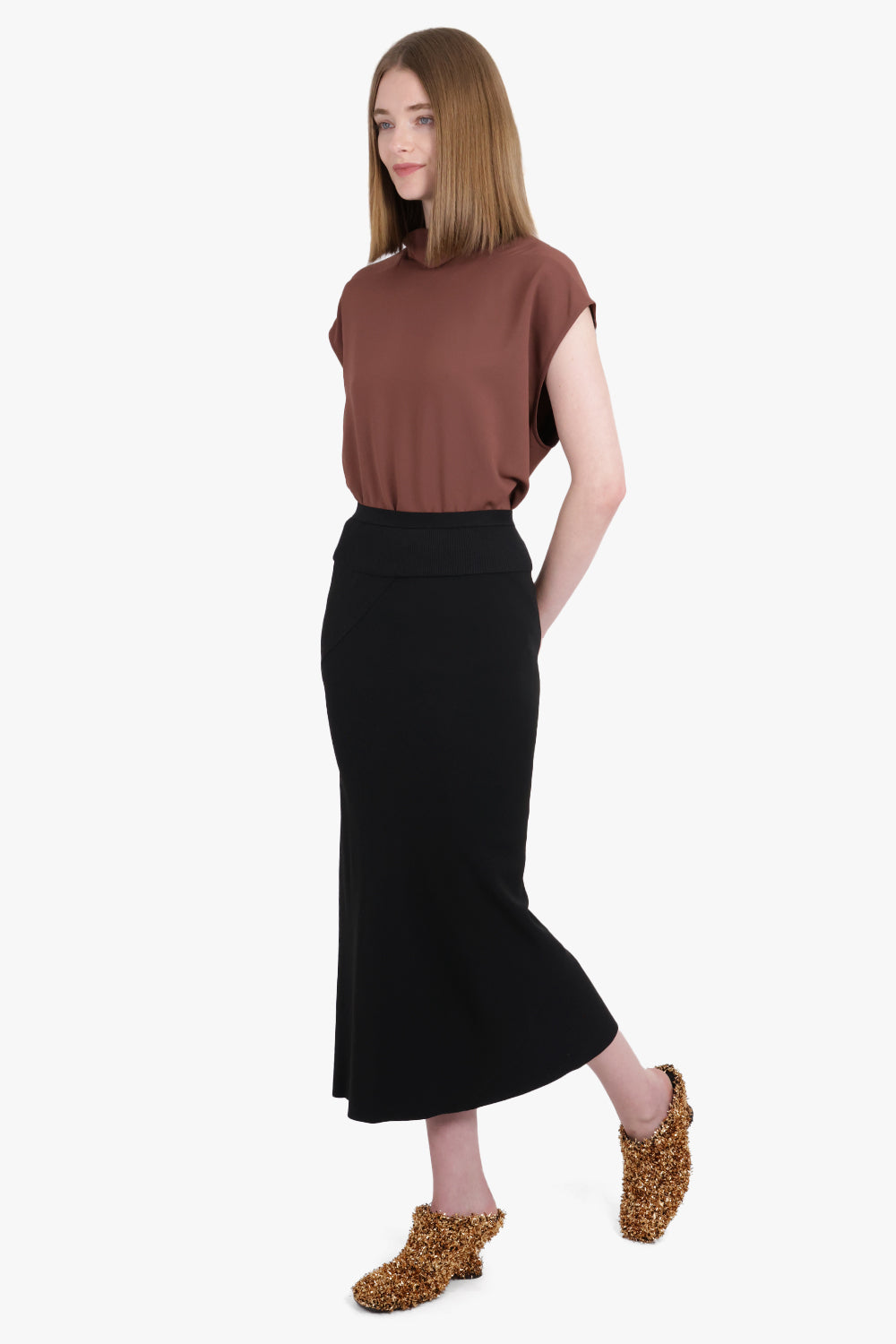 High Neck S/S Edfu T Top | Brown
