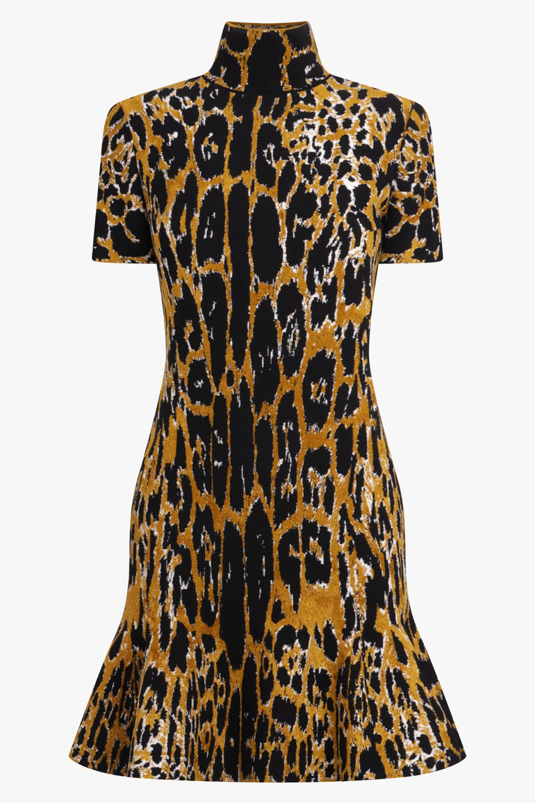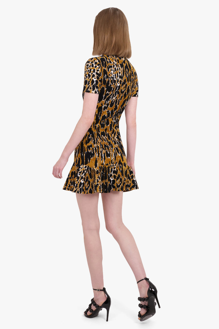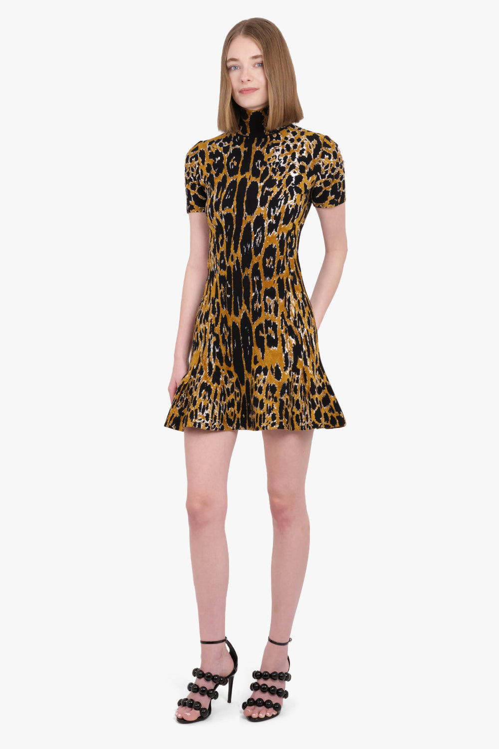 High neck S/S Leopard Print Skater Mini Dress | Multi
