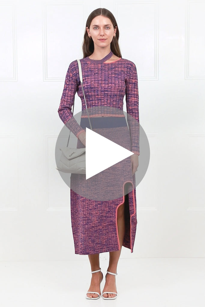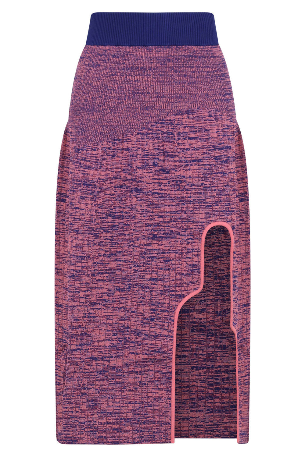 The Hiram Pleated Knit Skirt is crafted from a stretch knit fabrication and features a contrast ribbed waistband with the PH5 logo at the back center, and a midi length with an asymmetric front split.