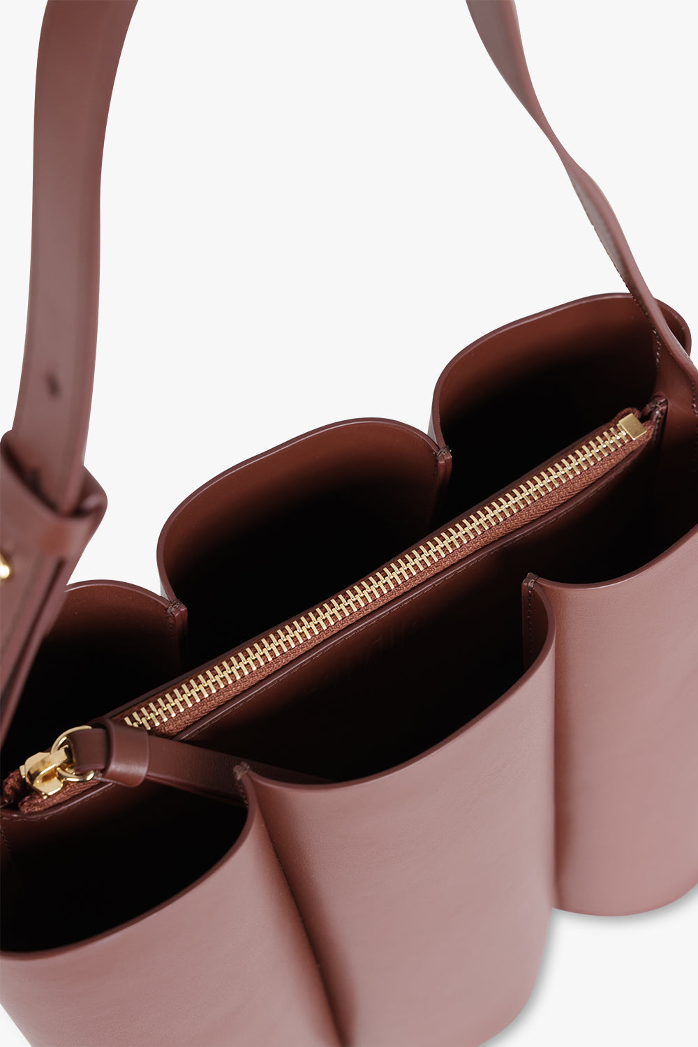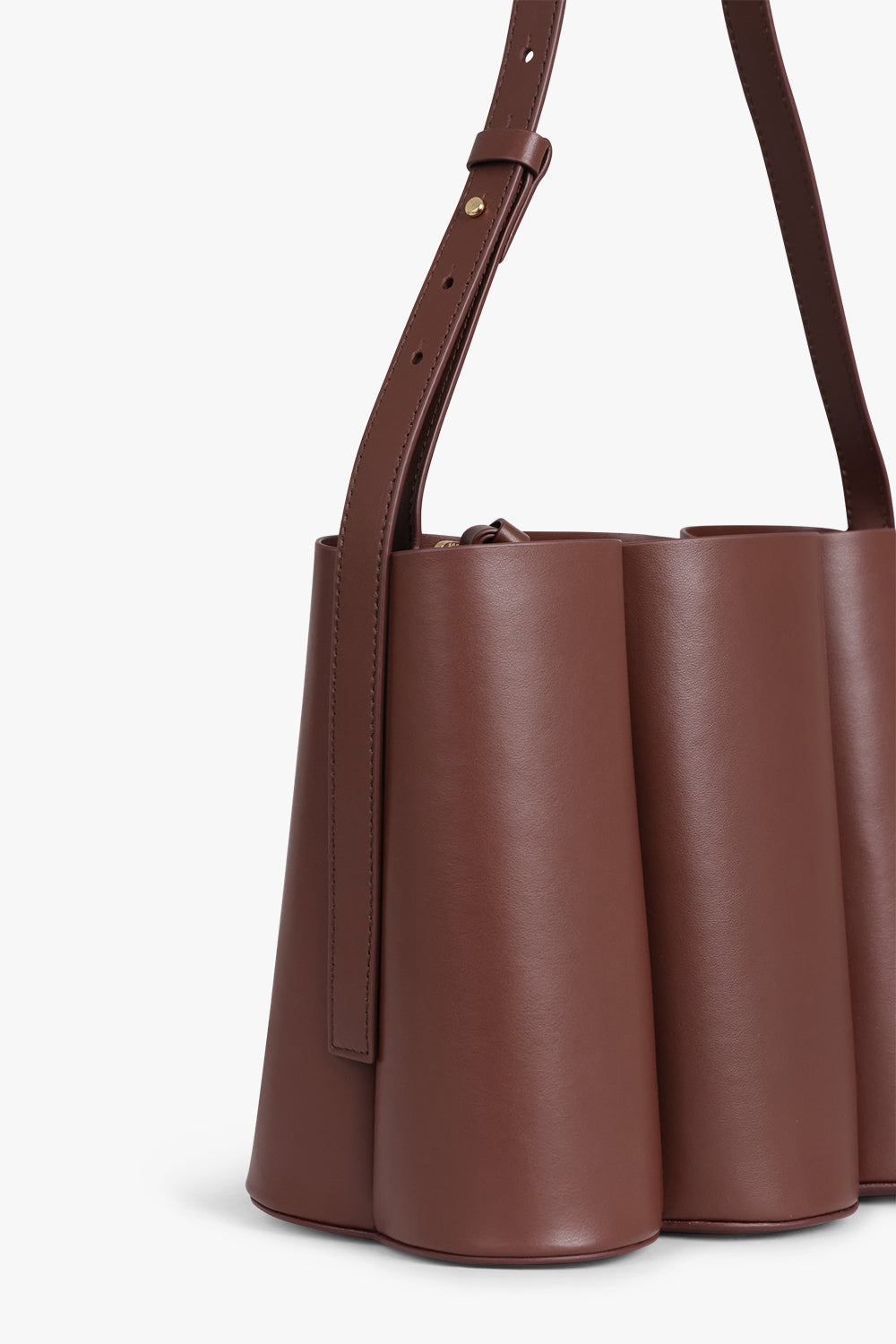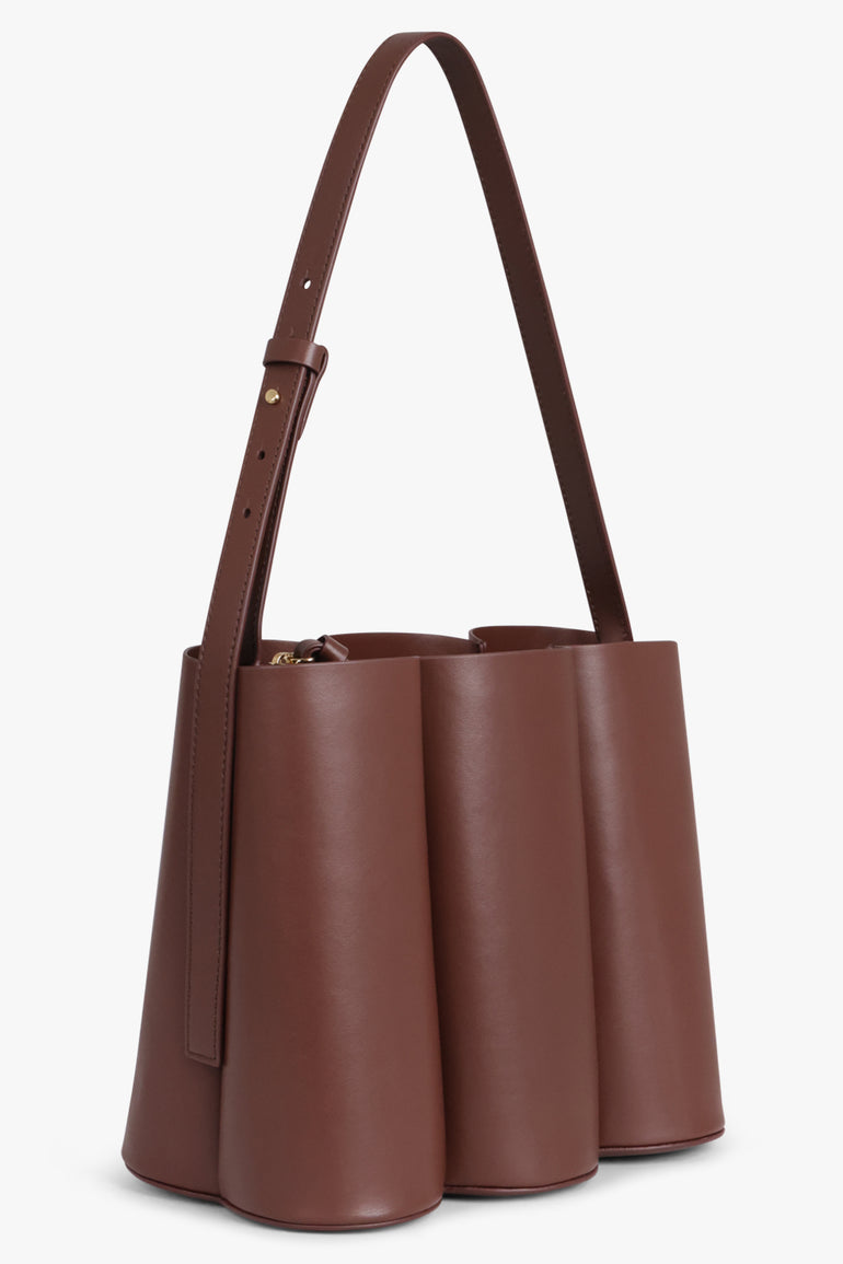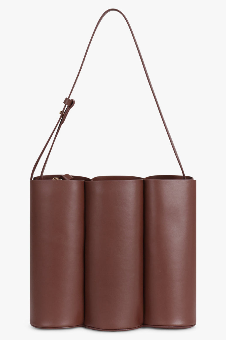 Our Jelly Curve Tote Shoulder Bag in Brown comes with an adjustable strap featuring a button closure for customizable comfort. The bag also includes an in-built zipper pocket for convenient storage, all designed with an elongated tubular shape and a flat bottom for added stability.