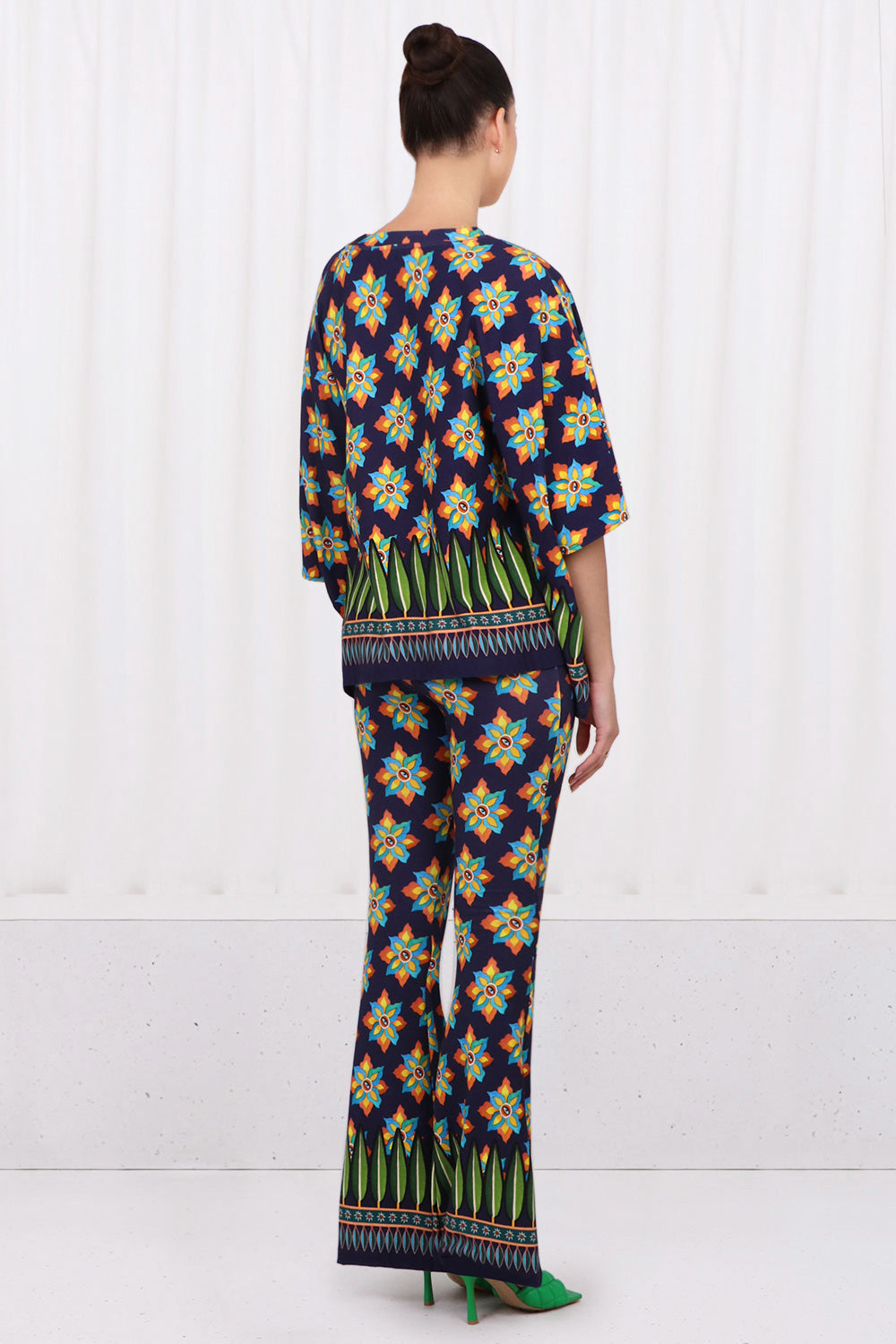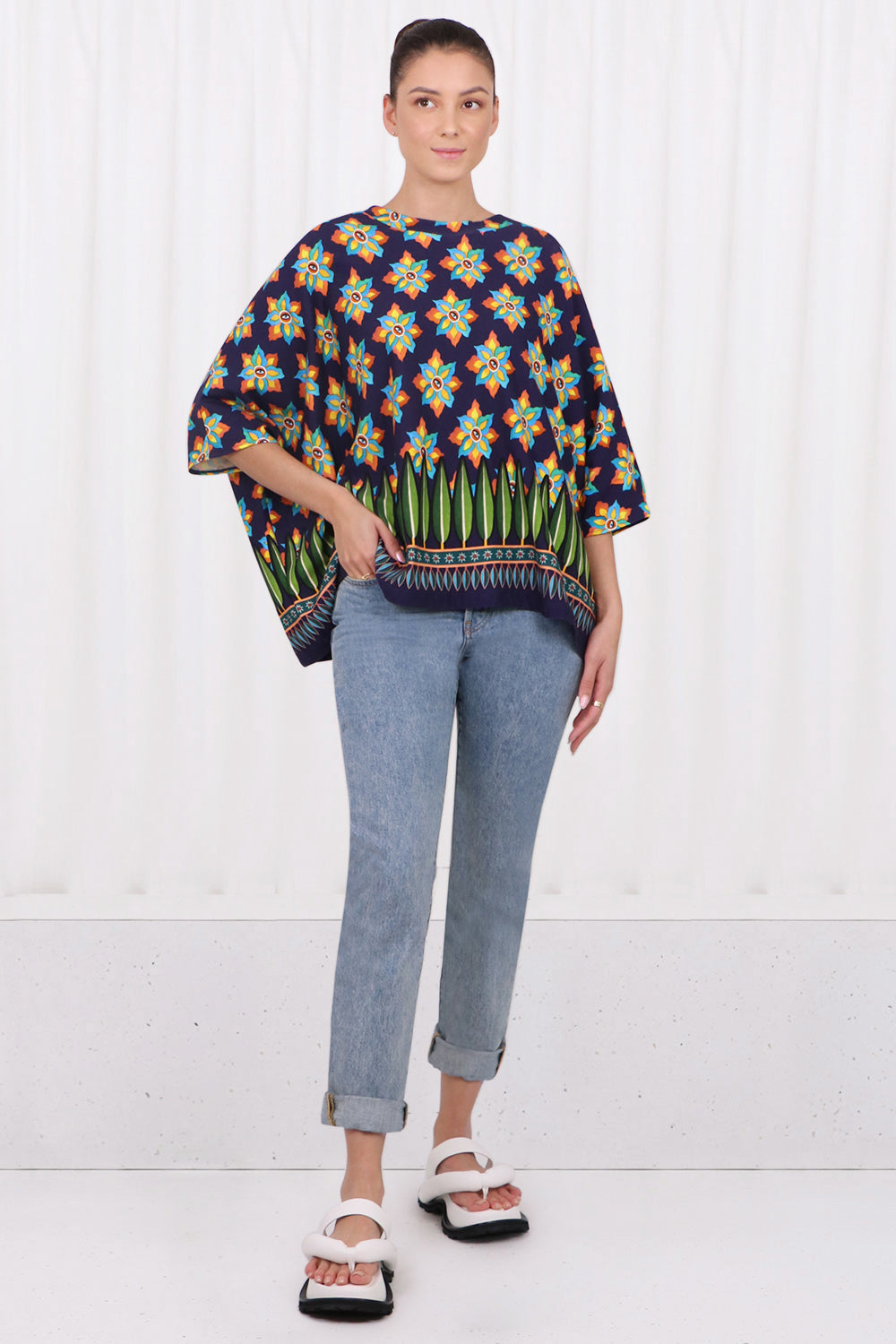 The La DoubleJ L/SL Meditation Printed Poncho is crafted from a soft cotton jersey fabrication featuring an all-over Occhi motif print. This style features a rectangle shape with draping sleeves, a round neckline and is designed for a loose fit.