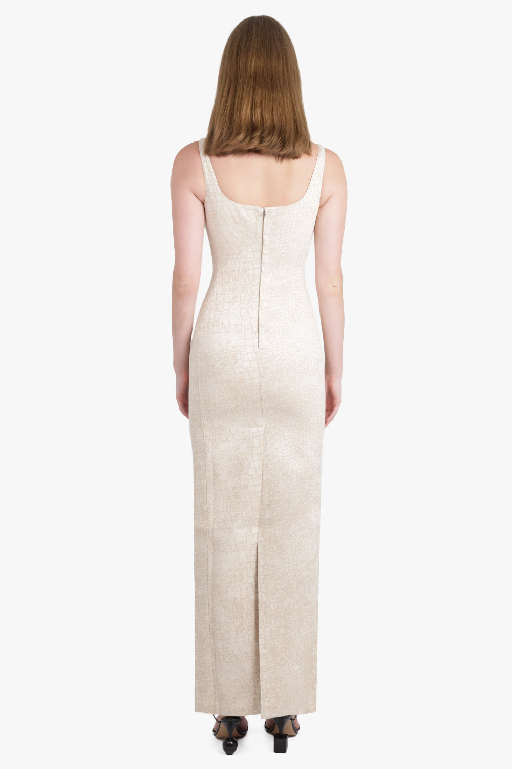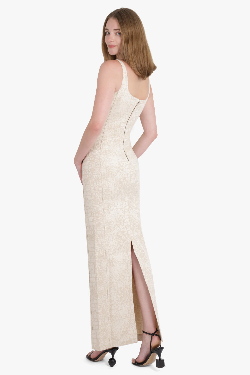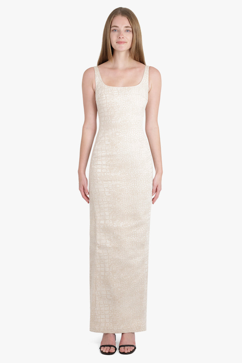 La Robe De-Nimes Croco Print S/Less Maxi Dress | Beige