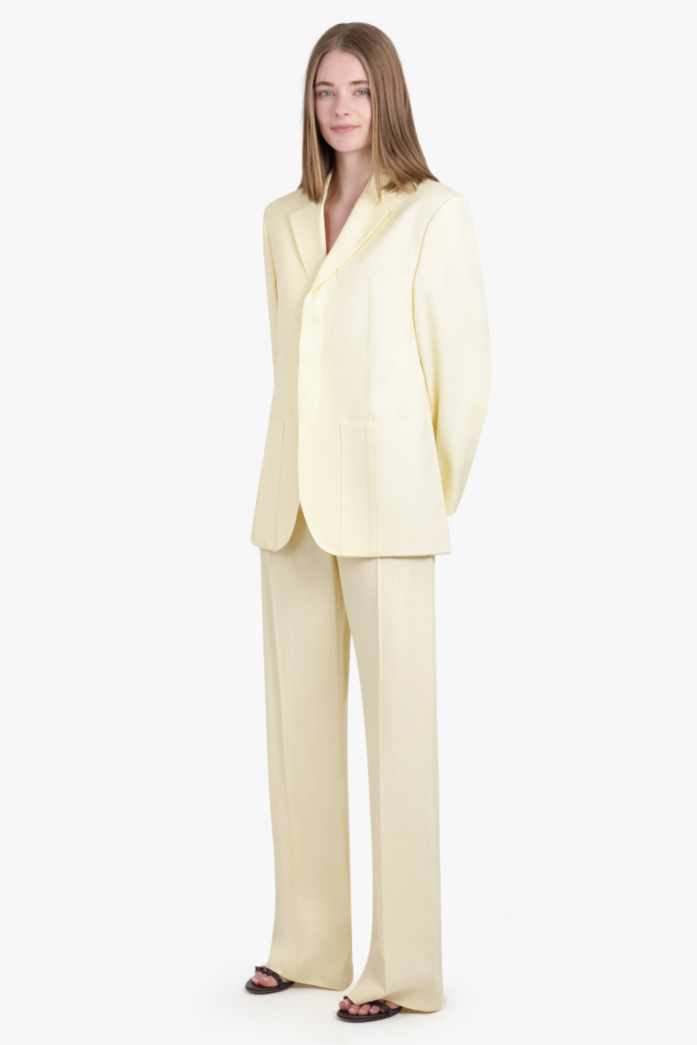 The signature minimalist and contemporary design style of Jacquemus is showcased in this single-breasted blazer. Featuring a neutral colourway, it draws attention to the garment's sleek tailored construction.