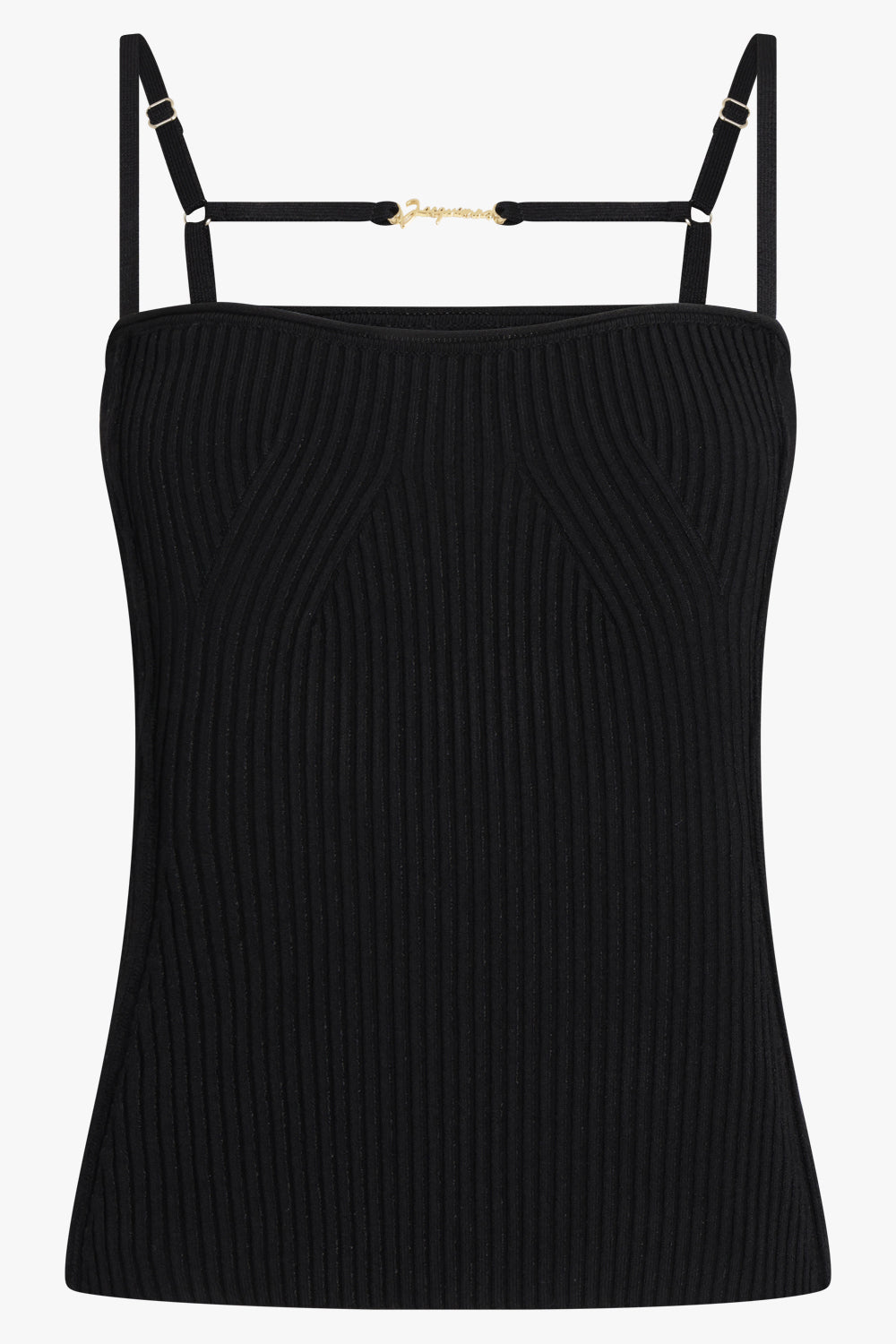 This tank top from Jacquemus is the perfect staple piece. Featuring ribbed detailing, adjustable elasticated straps and a gold metal charm logo in the back.