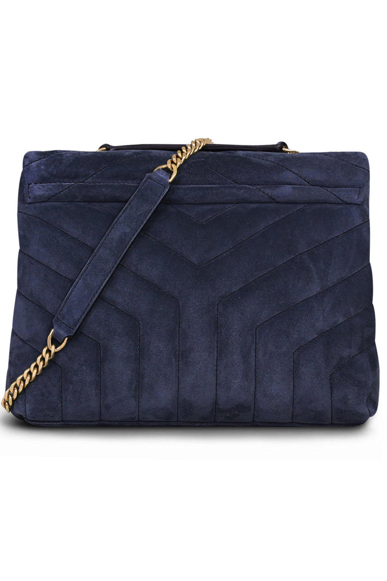 LOULOU SMALL FLAP BAG SUEDE DEEP MARINE/GOLD