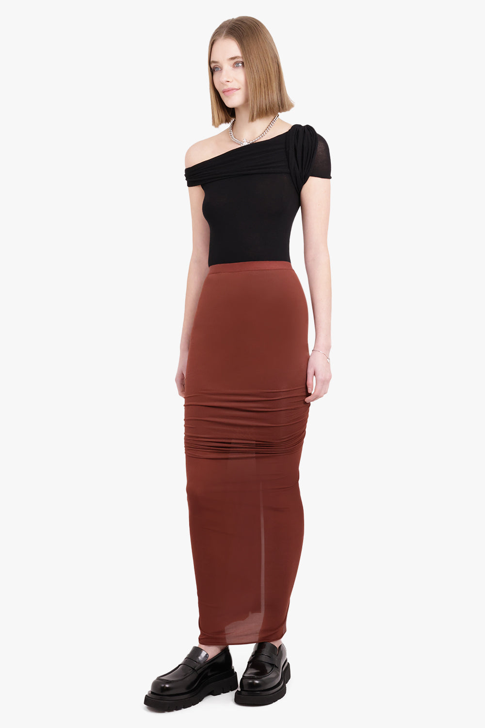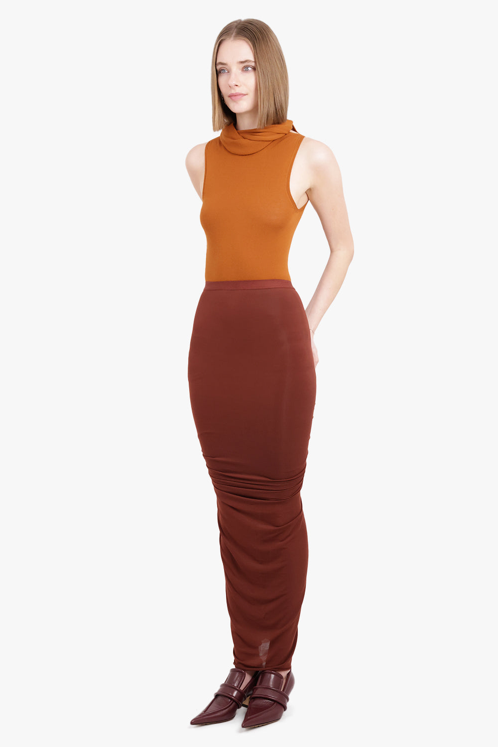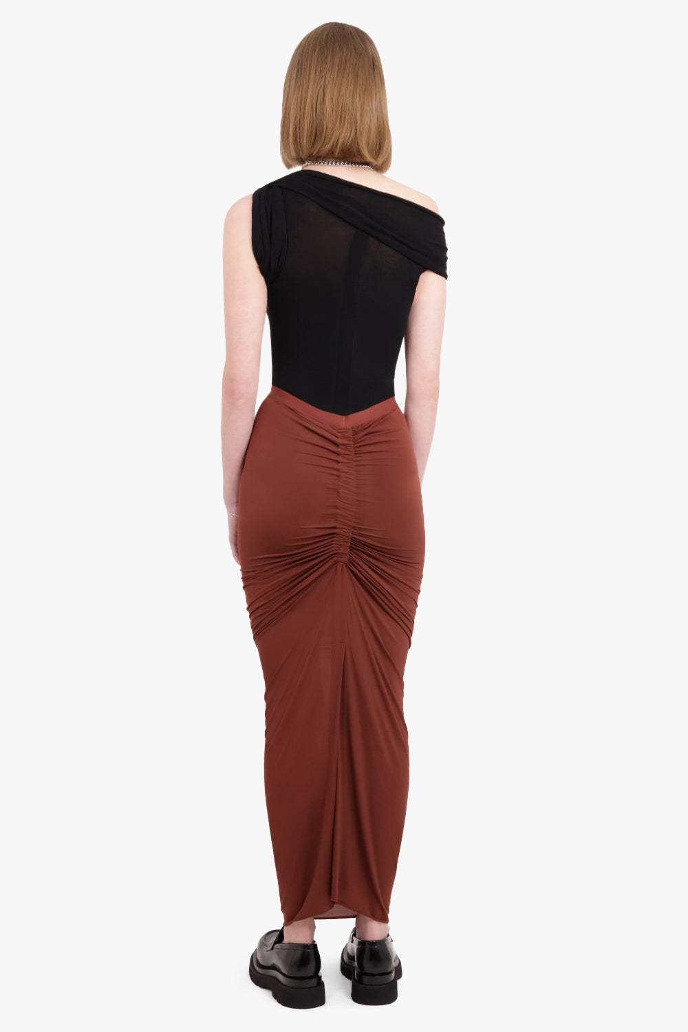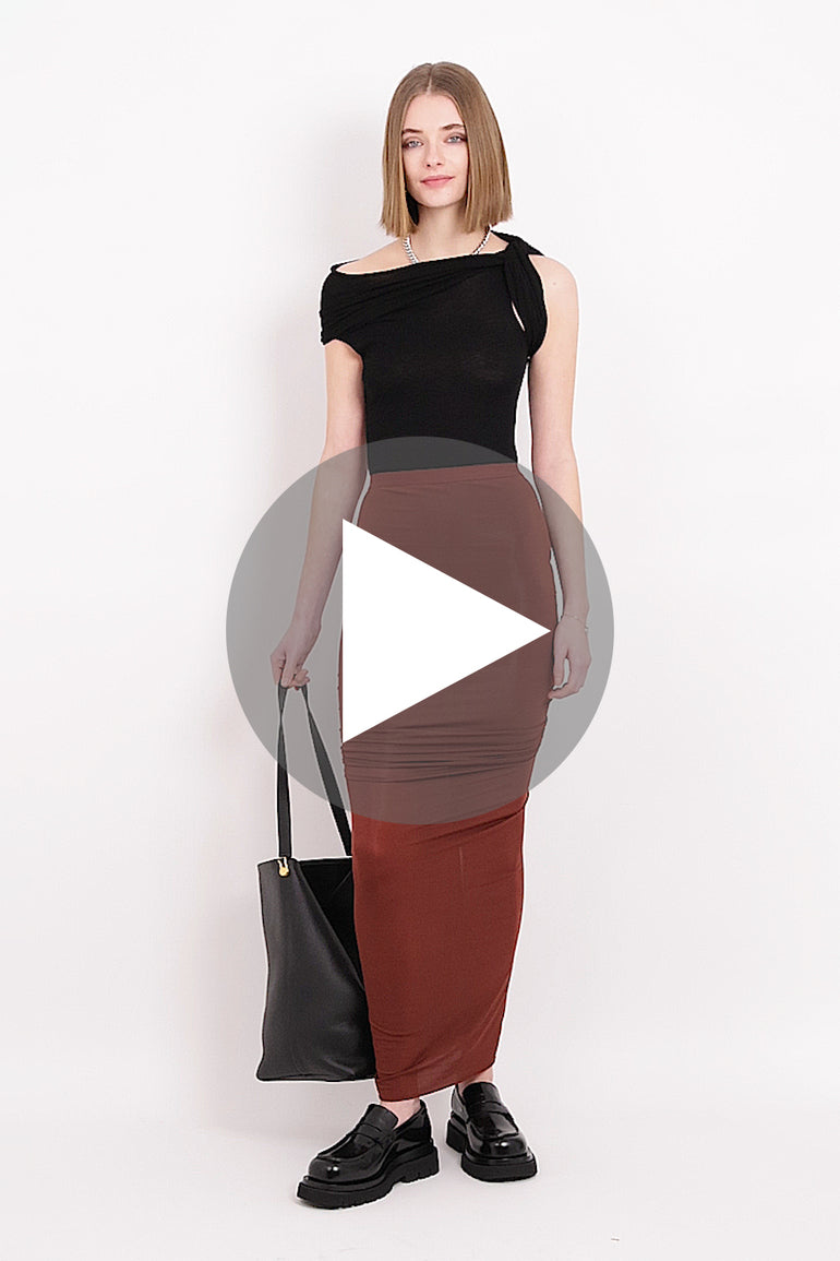 The Rick Owens Maglia Asymmetric Foldover Neck Twist Top is crafted in a lightweight polyester viscose blend. The style features a fold over neckline which can be worn in multiple ways. The body of the top is fitted.