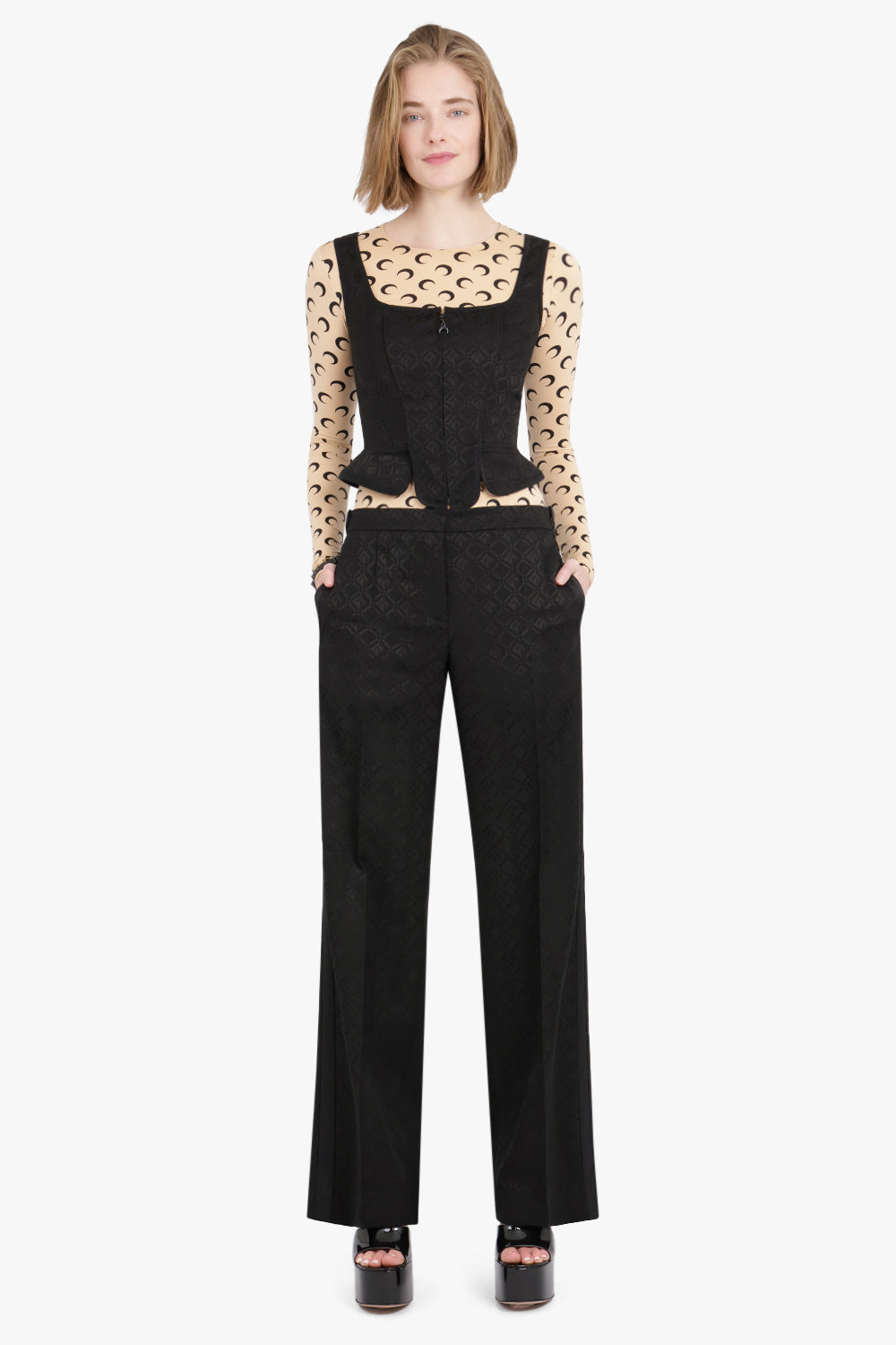 MARINE SERRE RTW Moon Diamant Jacquard Tailored Pants | Black