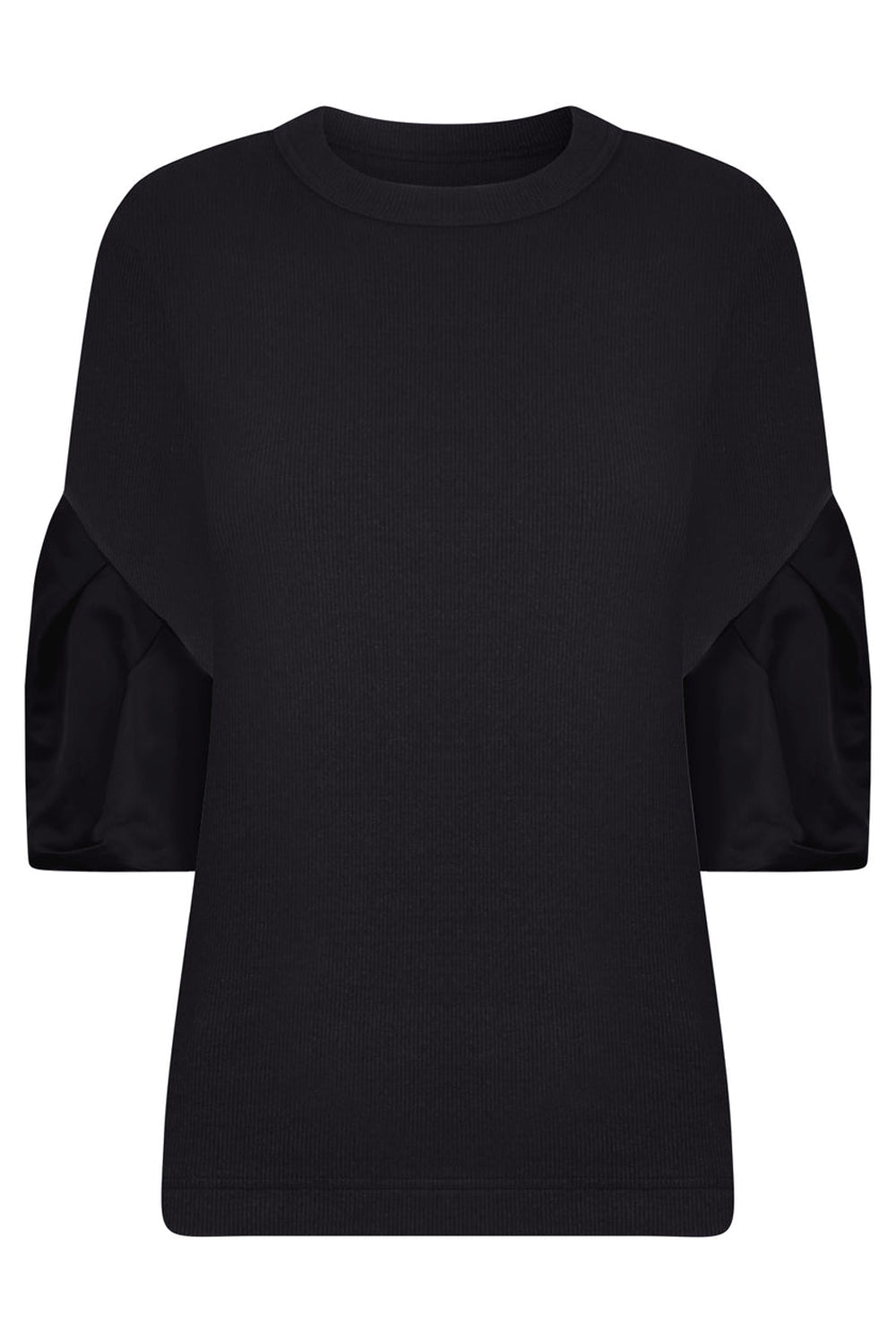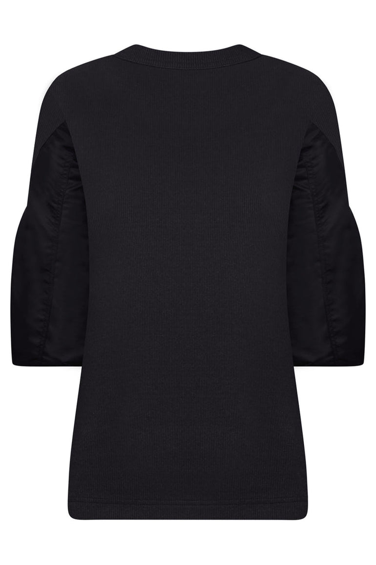 The Sacai Nylon Twill Mix Cotton Jersey Pullover in Black is a stretched fitted top,  featuring puffed quarter sleeves.