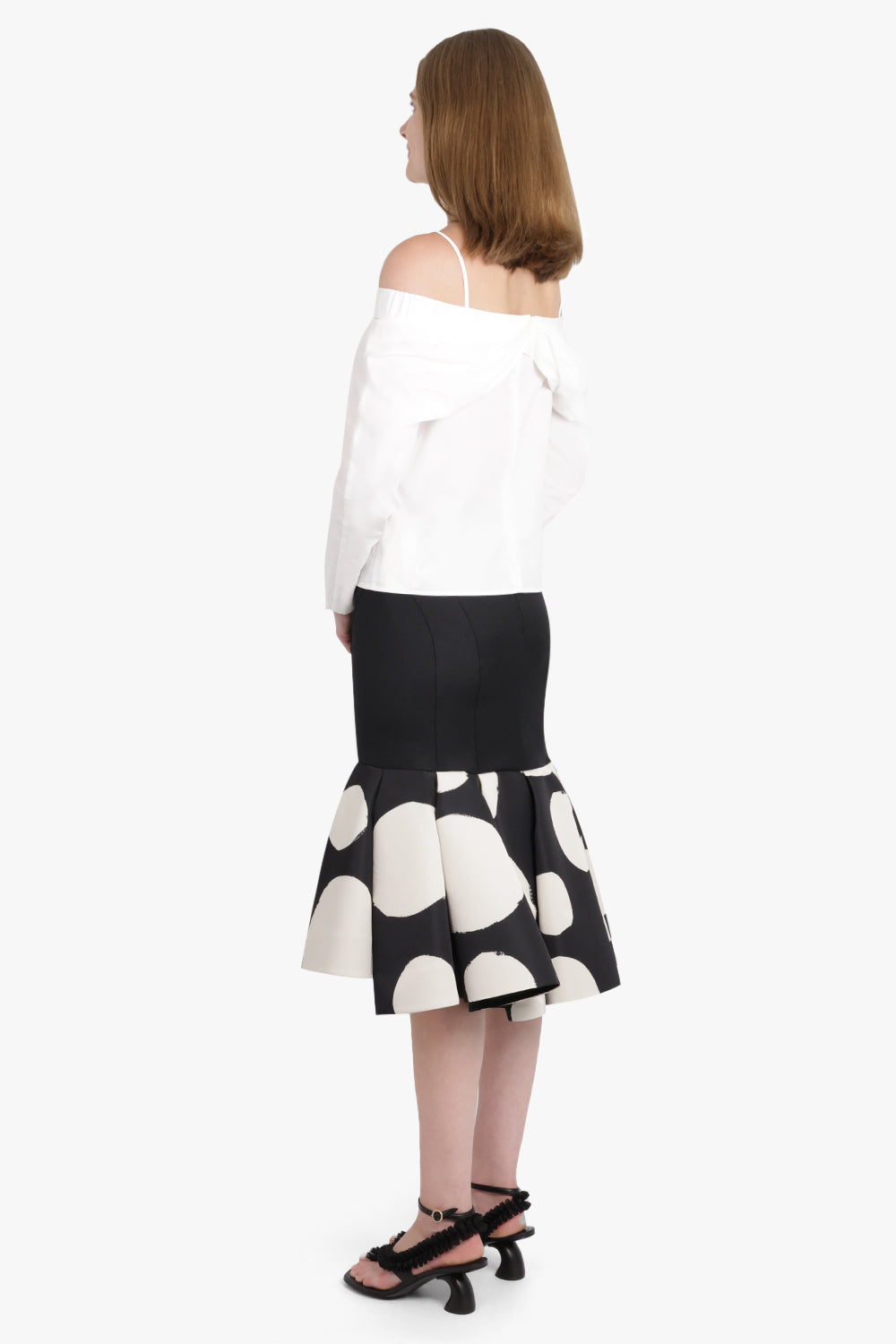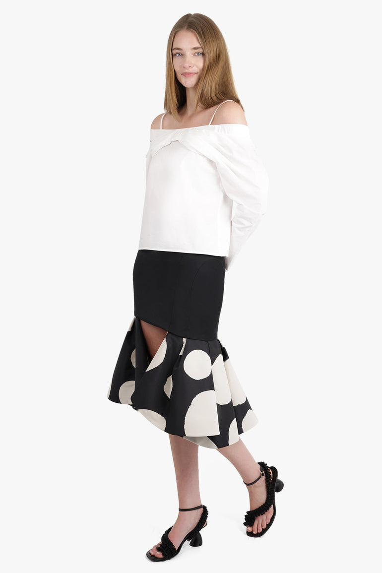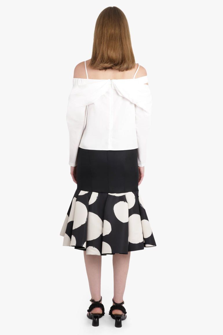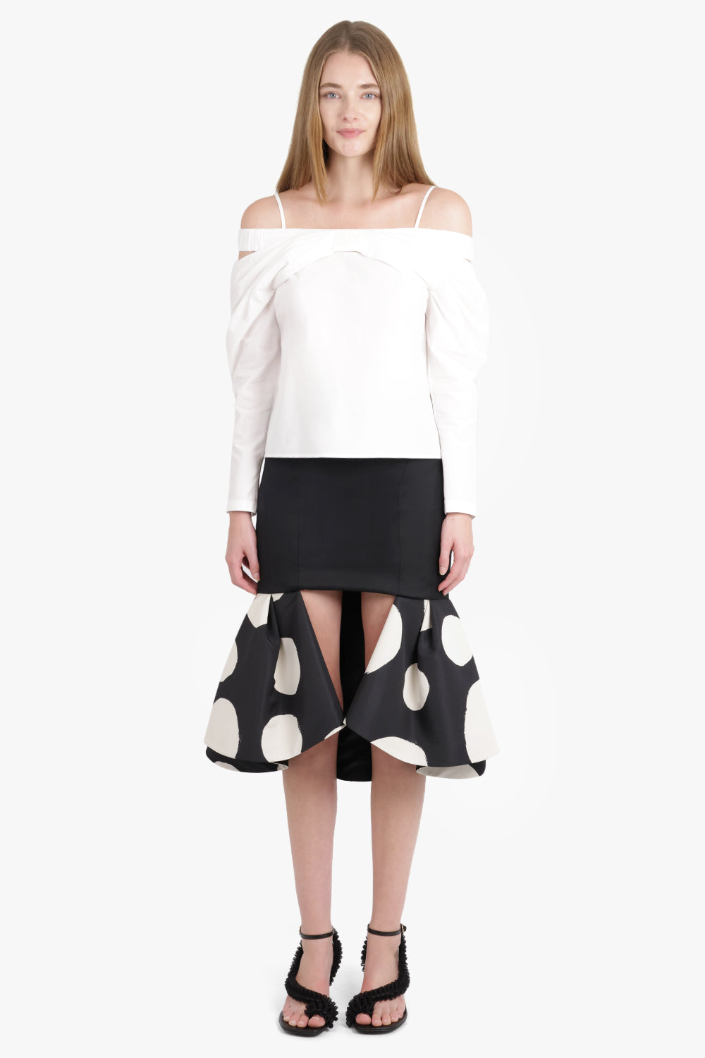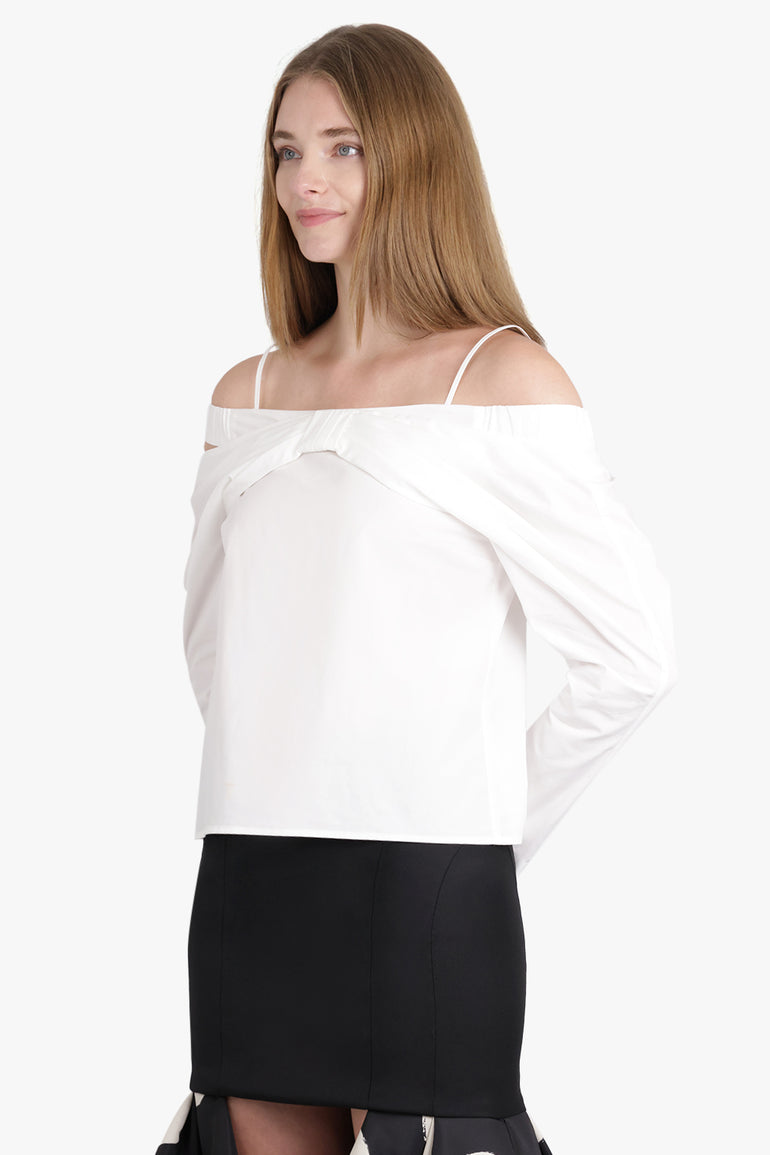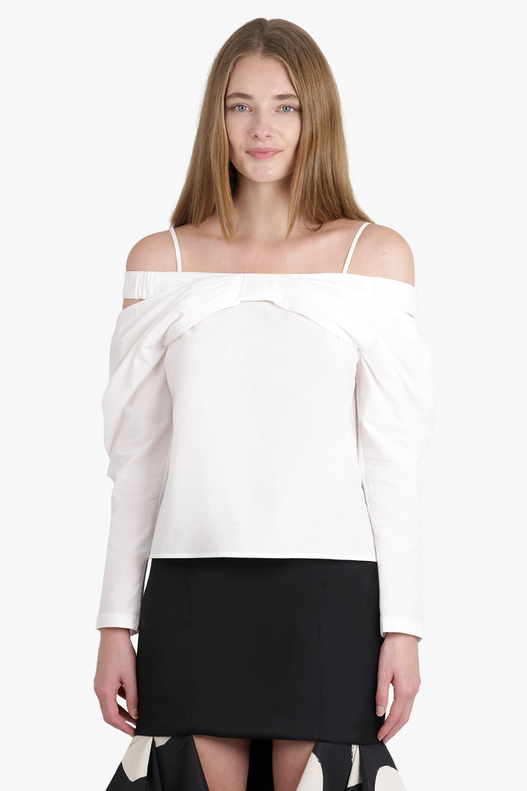 NINA RICCI RTW Off Shoulder Bow Detail L/S Top | White