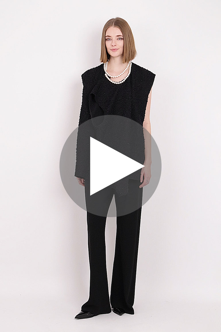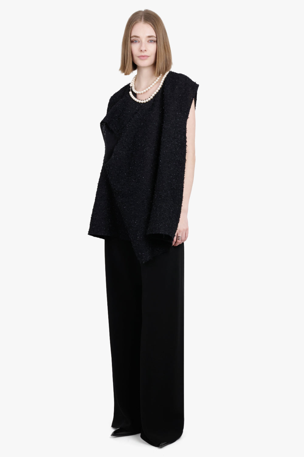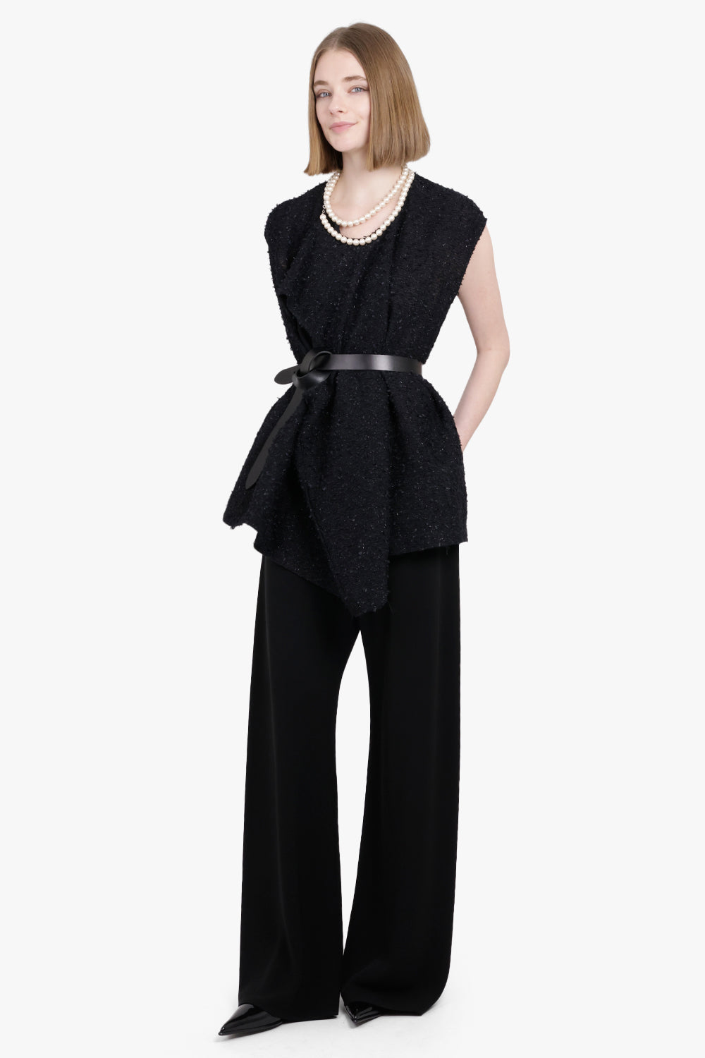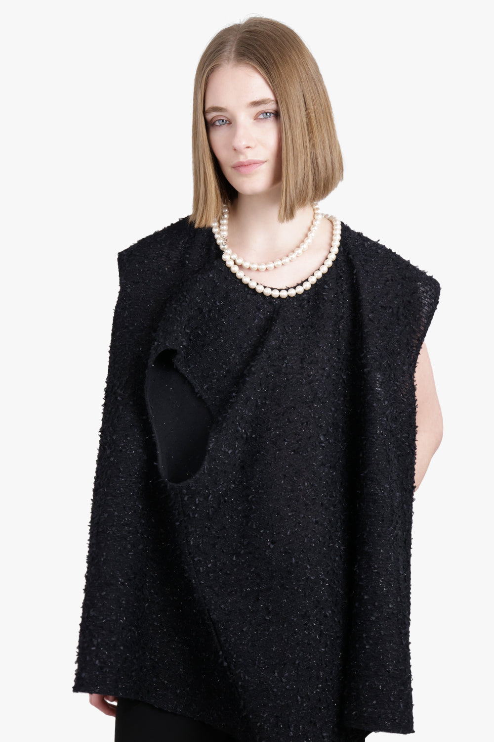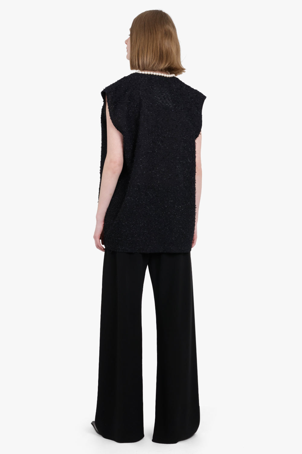 Pearl Neck Sleeveless Top with Draped Back | Black