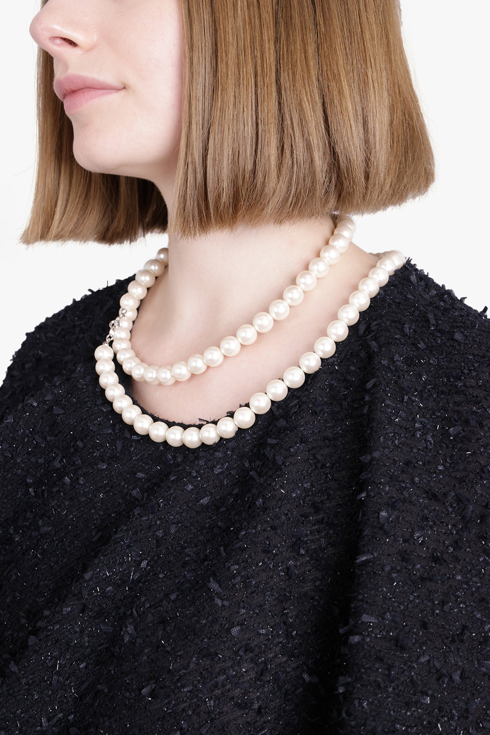 The Junya Watanabe Asymmetric Chain Neck S/S Drape Top is crafted in a cotton/polyester/nylon material. The style features a chain detail neckline and draped asymmetric front.