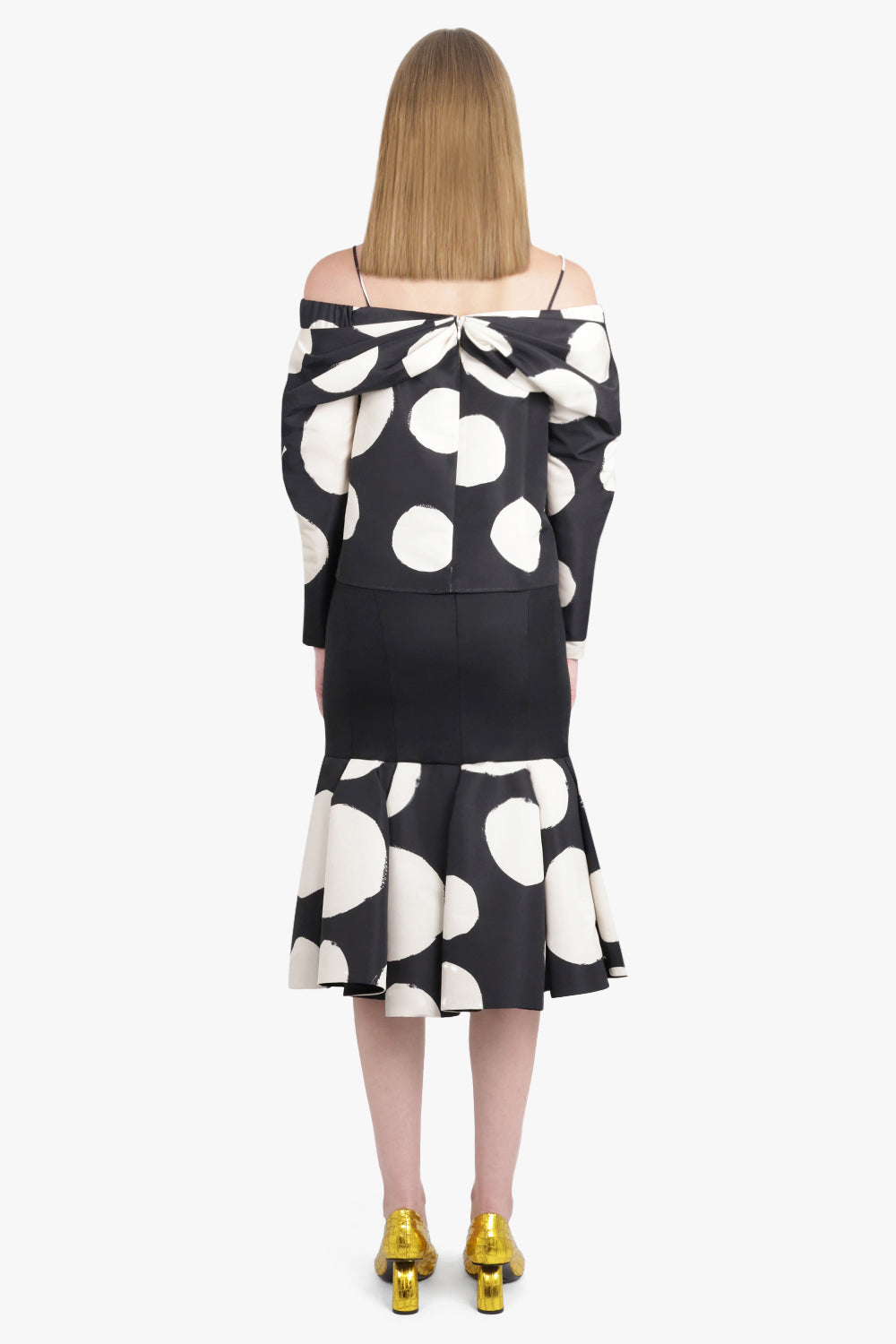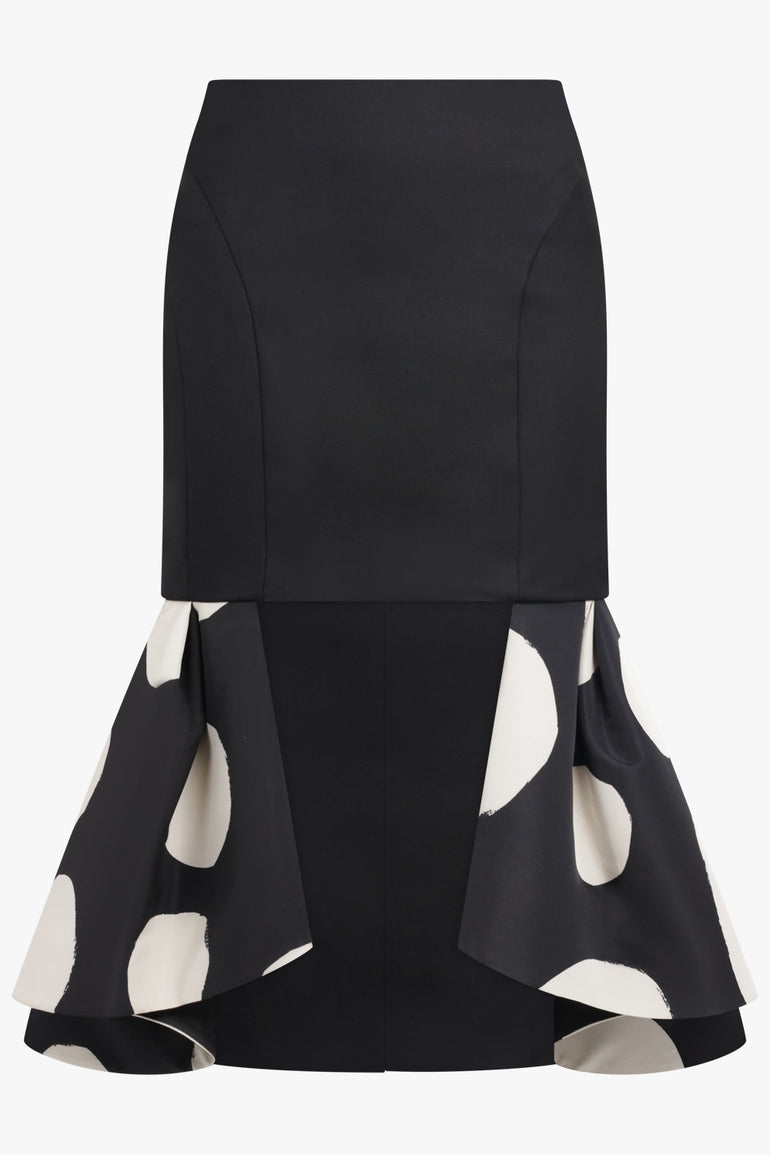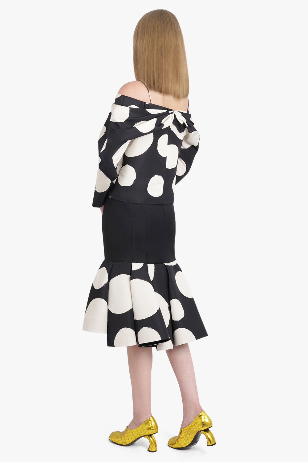 NINA RICCI RTW Peplum Polka Dot Midi Skirt With Cut Out Detail | Black/White
