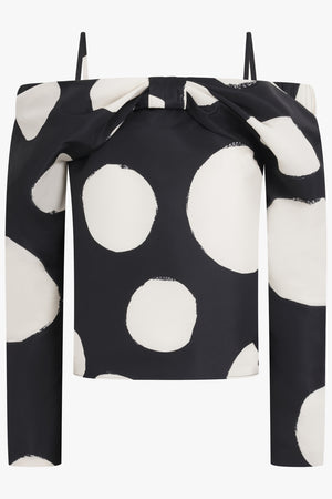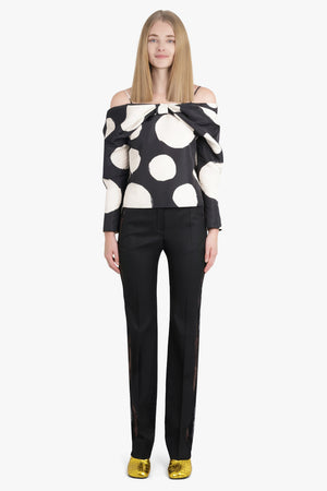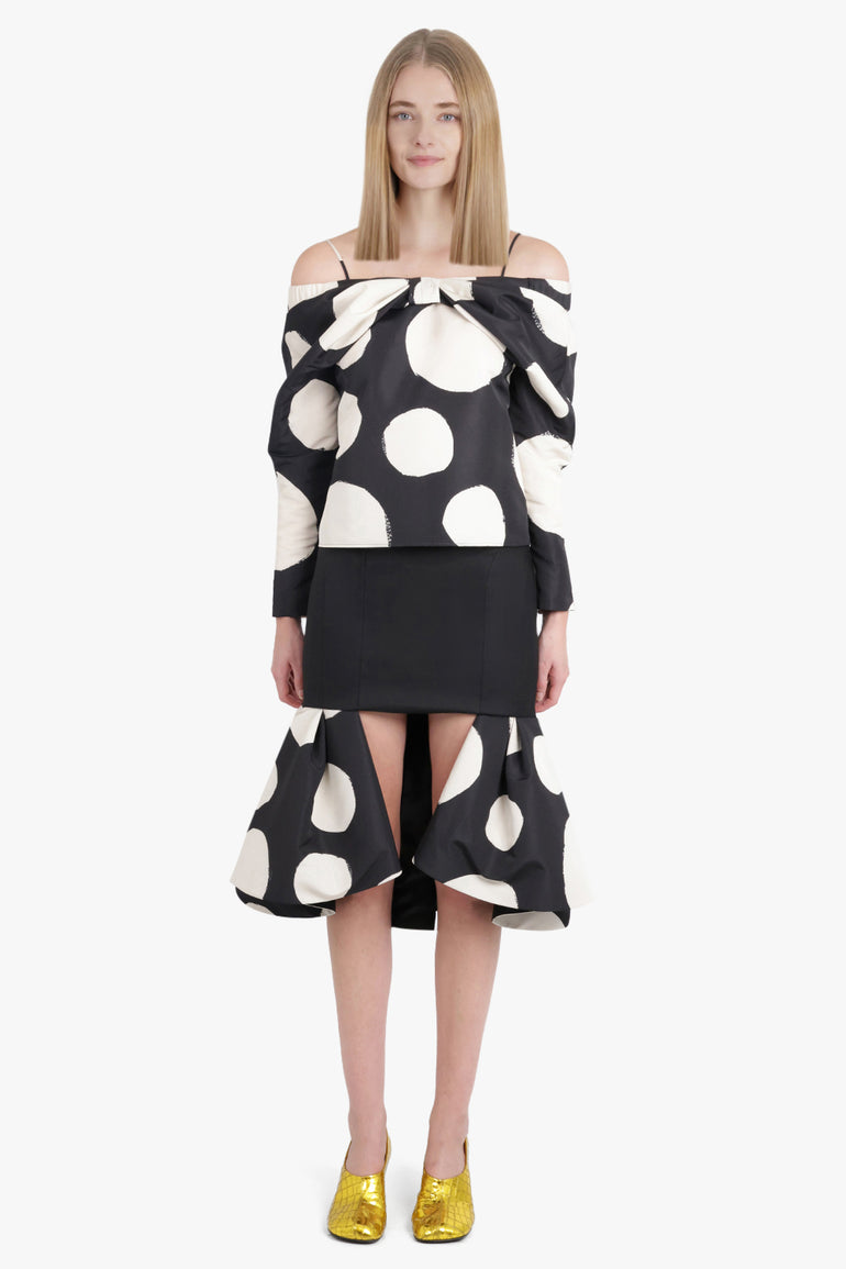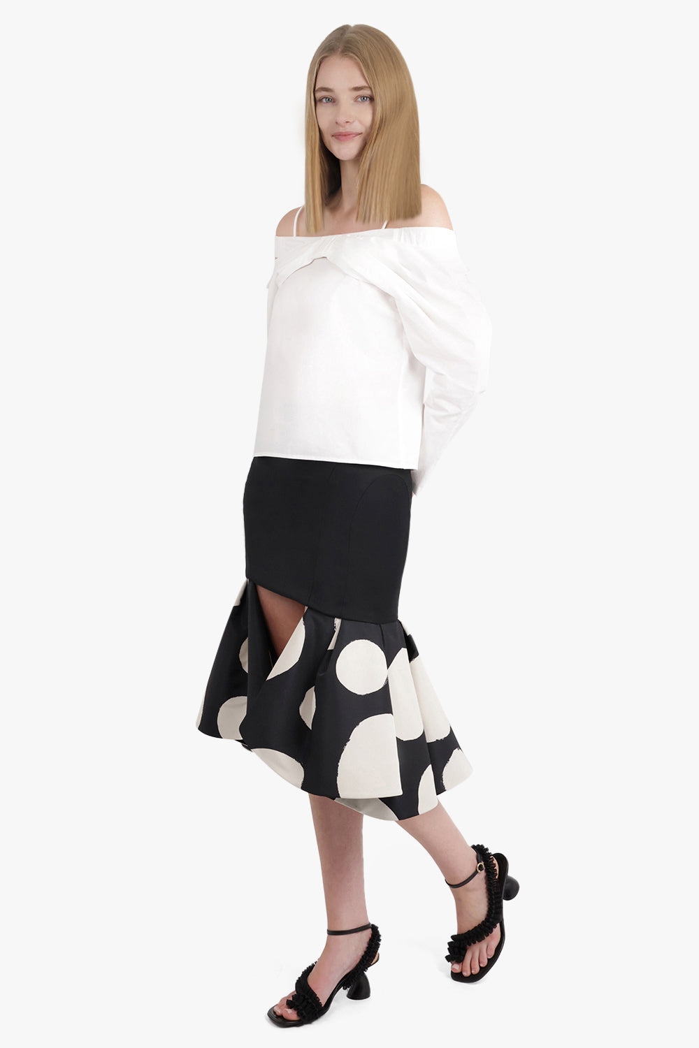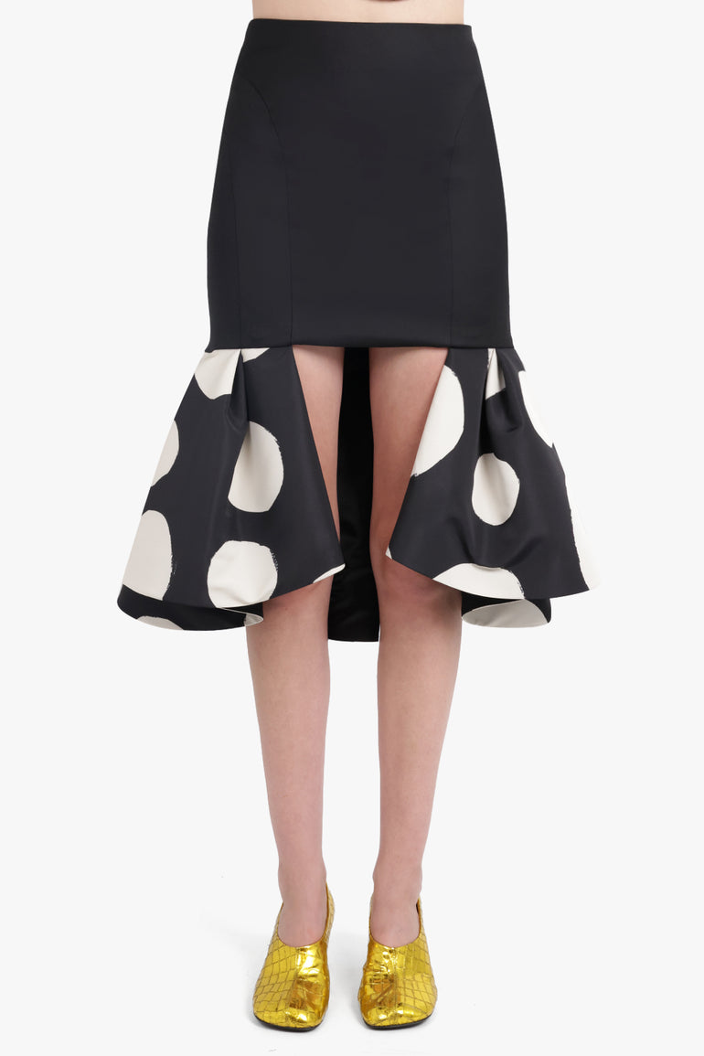 NINA RICCI RTW Peplum Polka Dot Midi Skirt With Cut Out Detail | Black/White