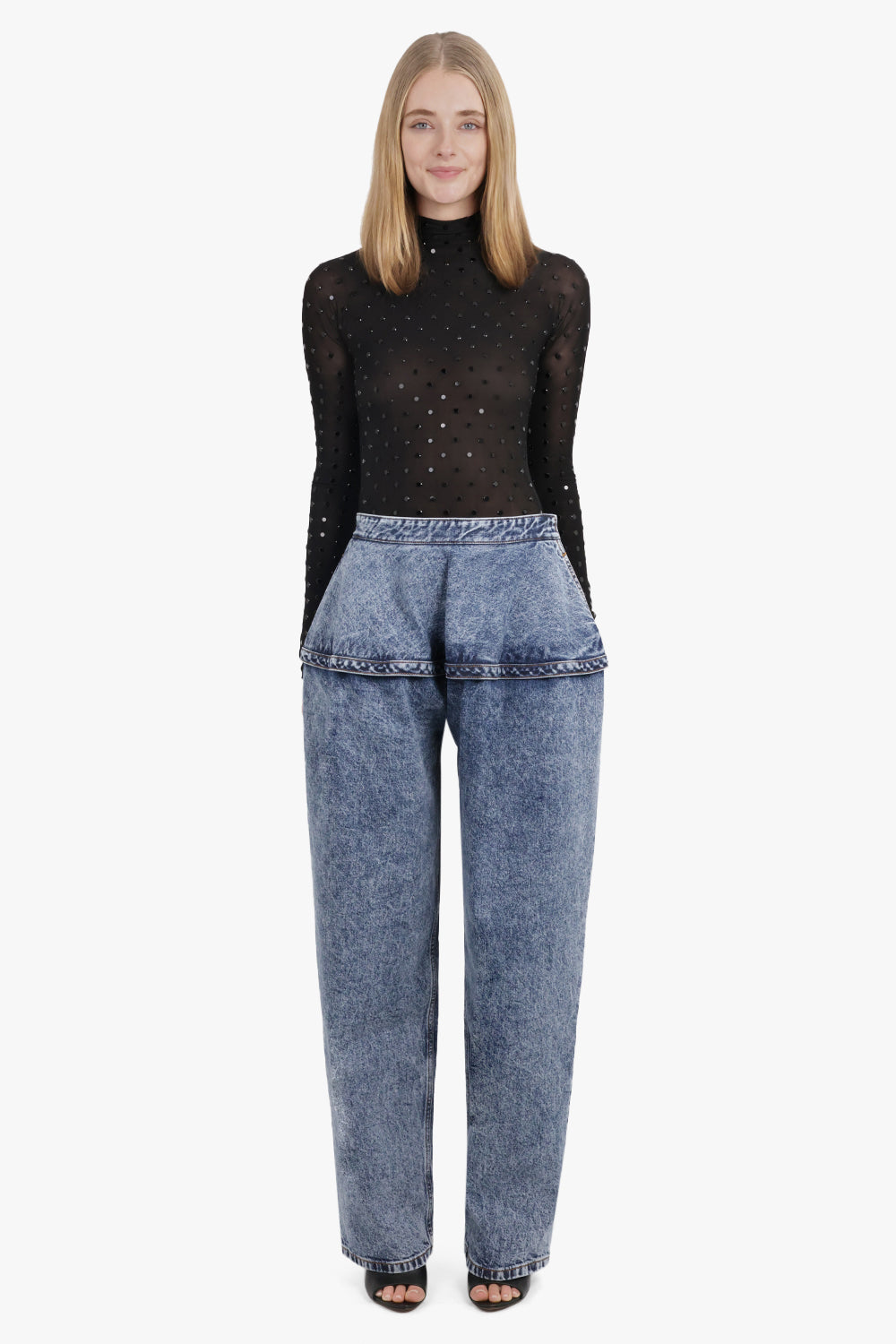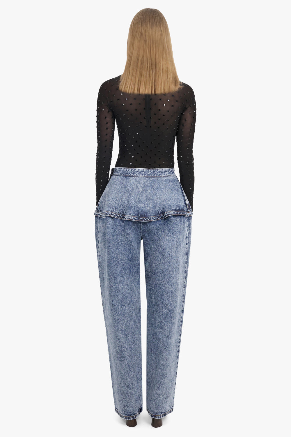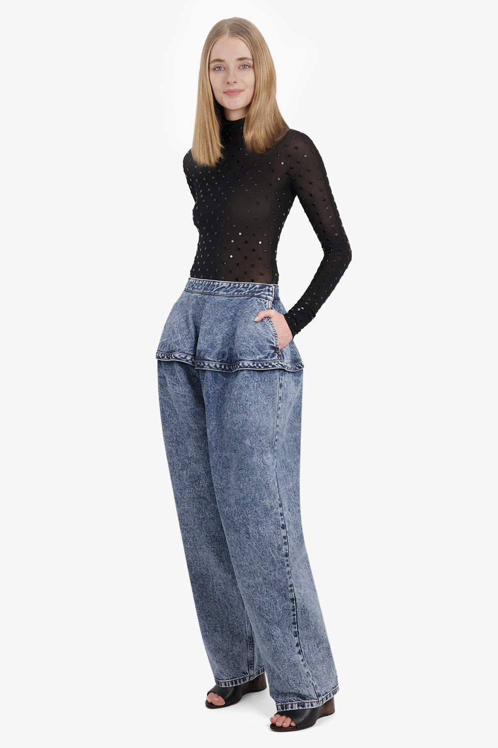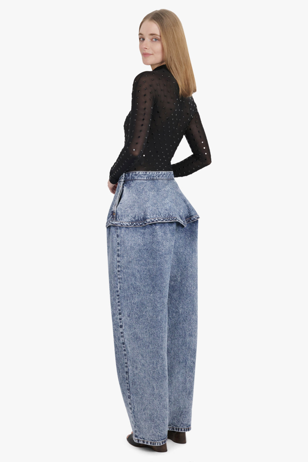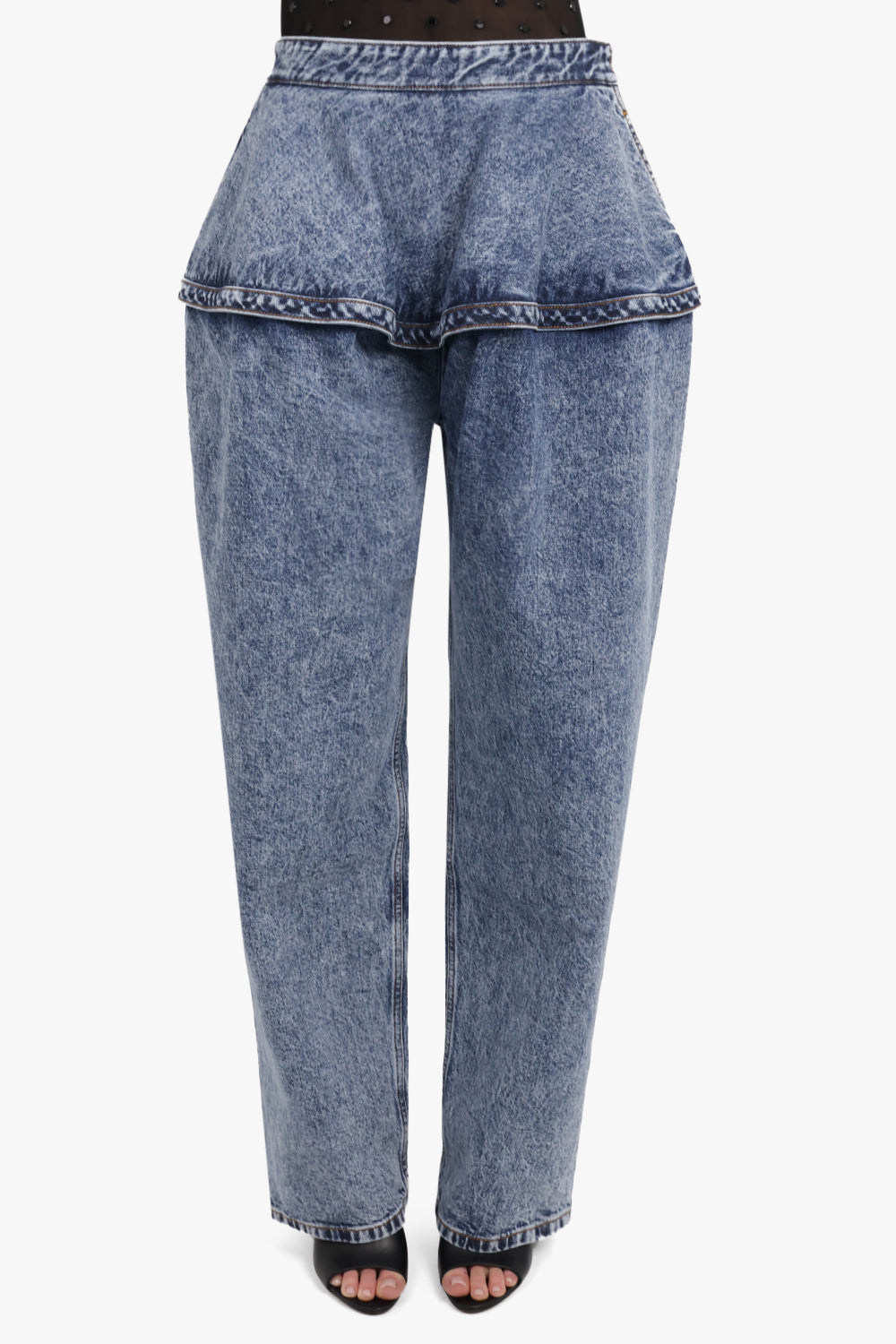 ALAIA RTW Peplum Waist Denim Wide Leg Jeans | Snow Blue