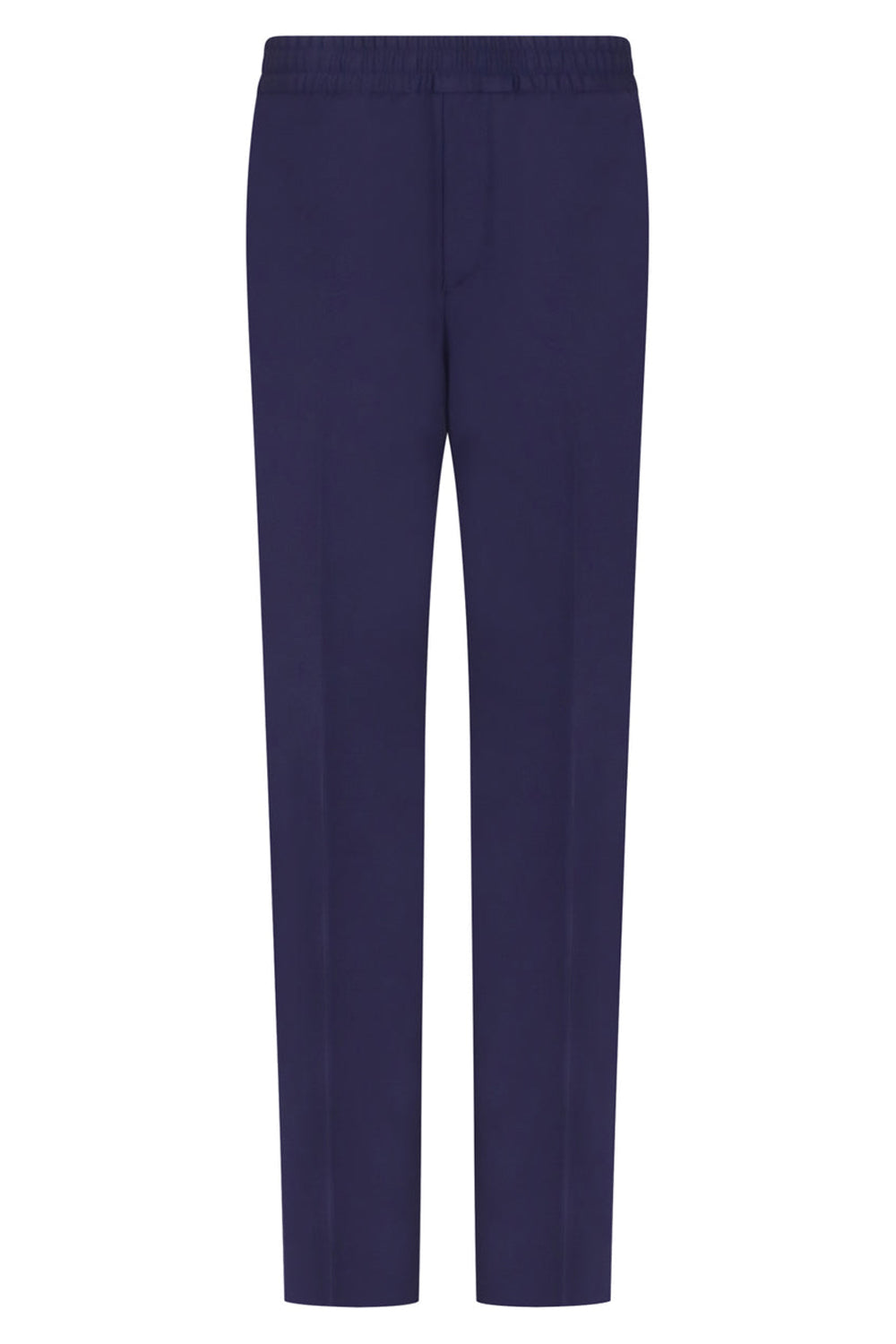 These Filipa K relaxed wool trousers in navy are a full length fit, slightly tapered at the bottom. They feature an elasticated drawstring waistband, rear welt pockets, side pockets and slight pressed creasing at the front.