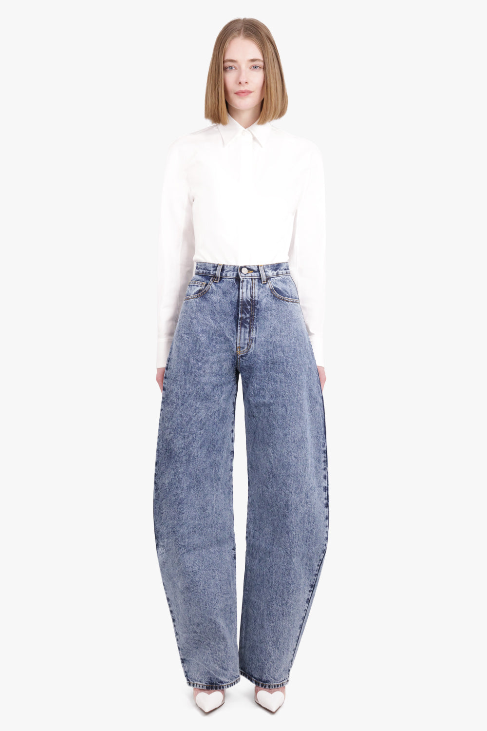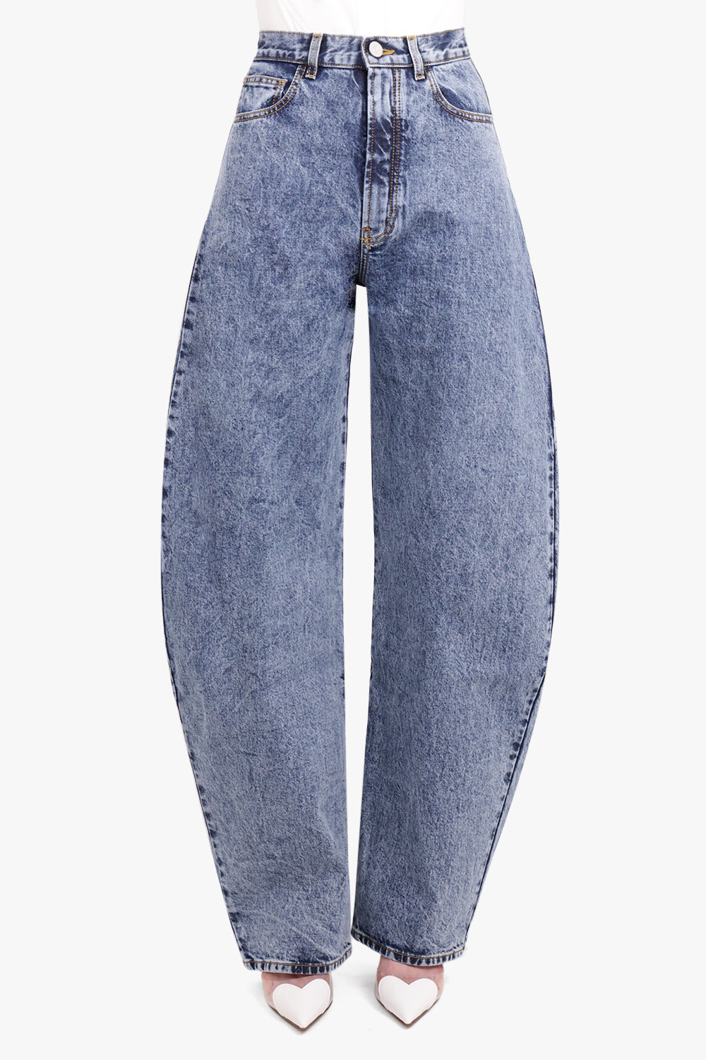 Rounded Balloon Leg Denim Pant | Blue Snow