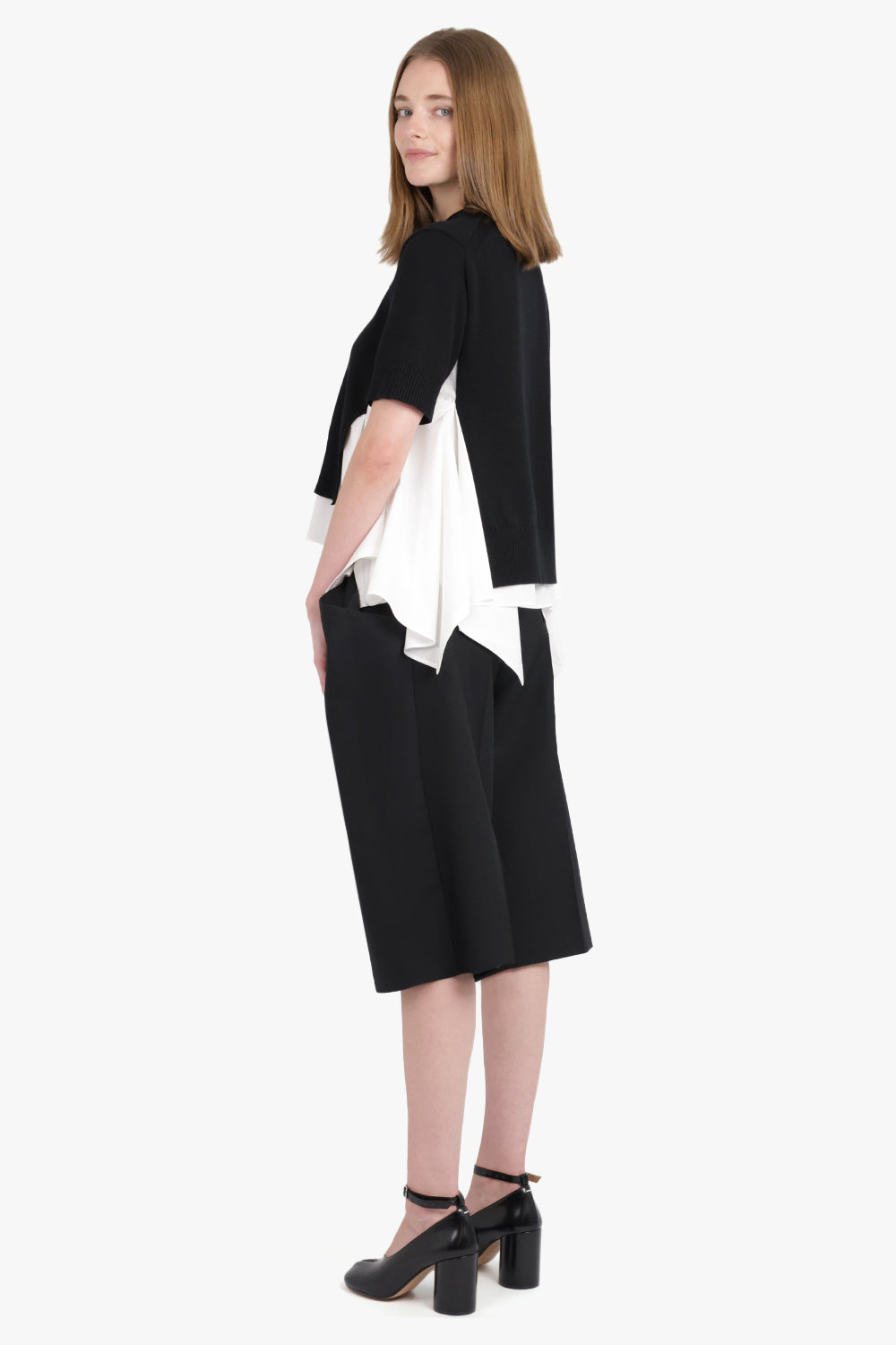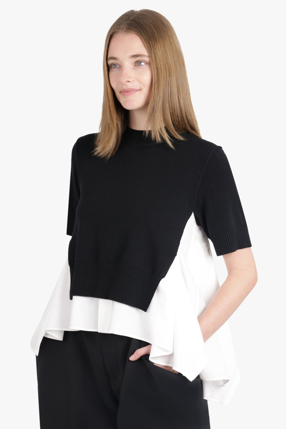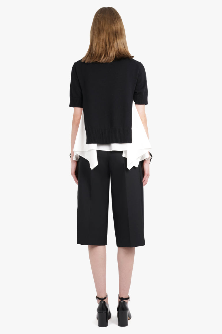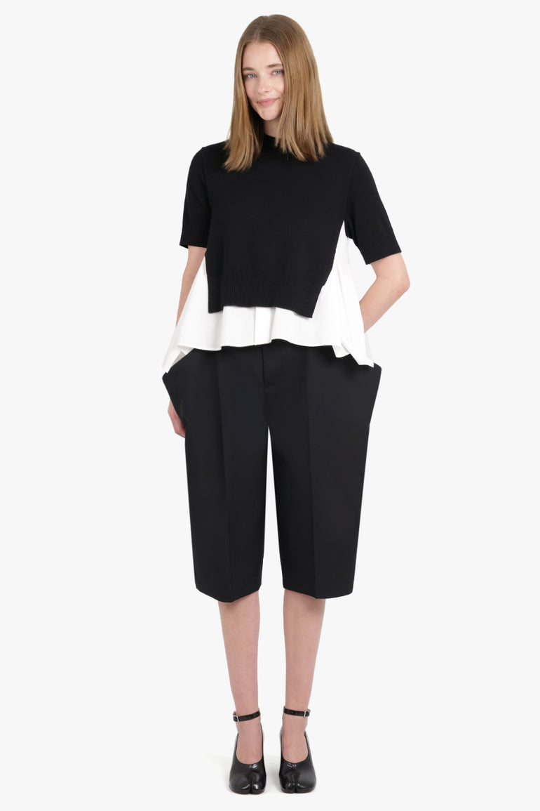 SACAI RTW S/S Knit X Shirt Style Top | Black/Off White