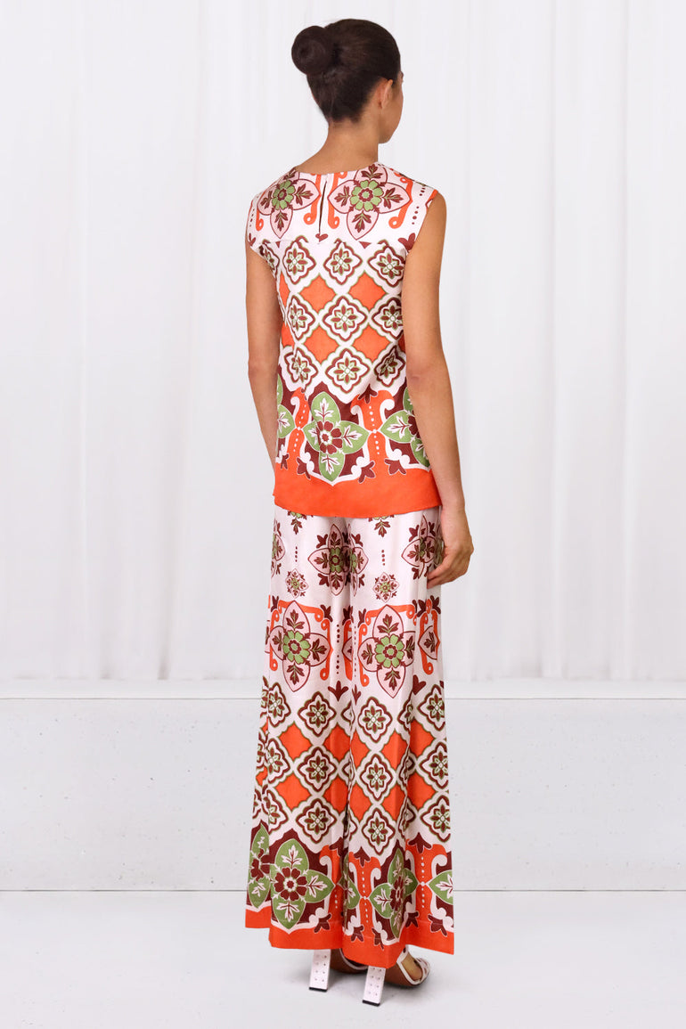 The La Double San Carlo Top in Partenope is crafted from silk, this style features a classic tank cut, before flowing into a romantic scarf train.
