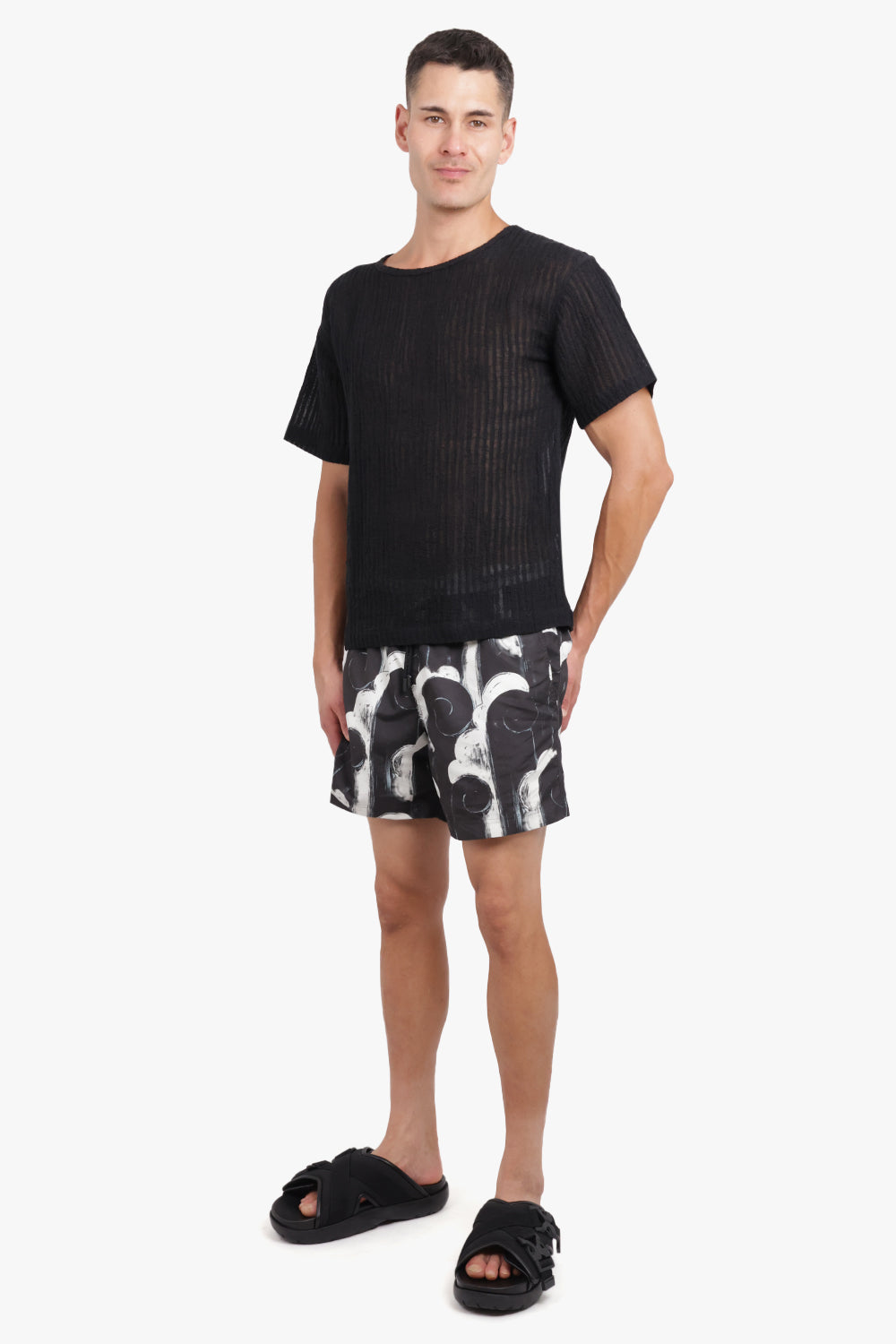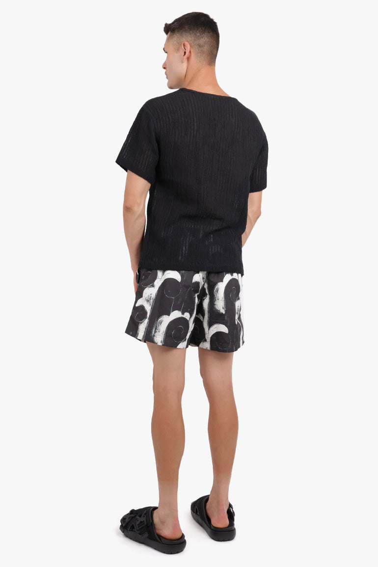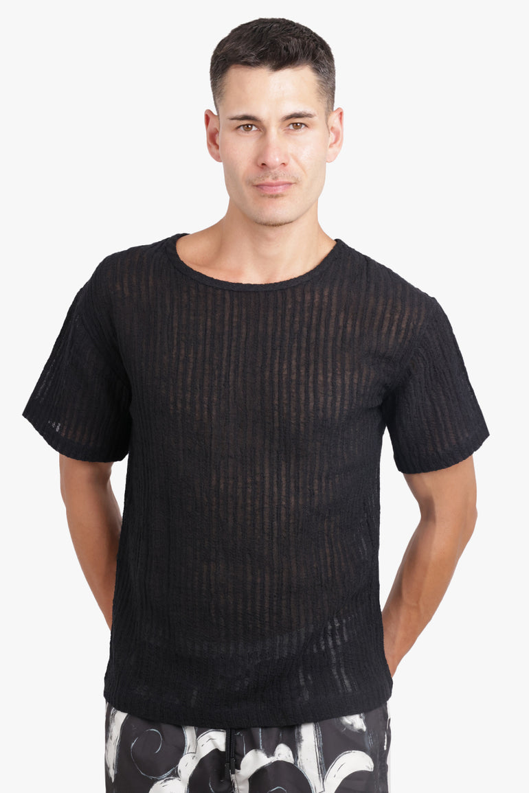 Sheer Stripe Crewneck S/S T-Shirt | Black