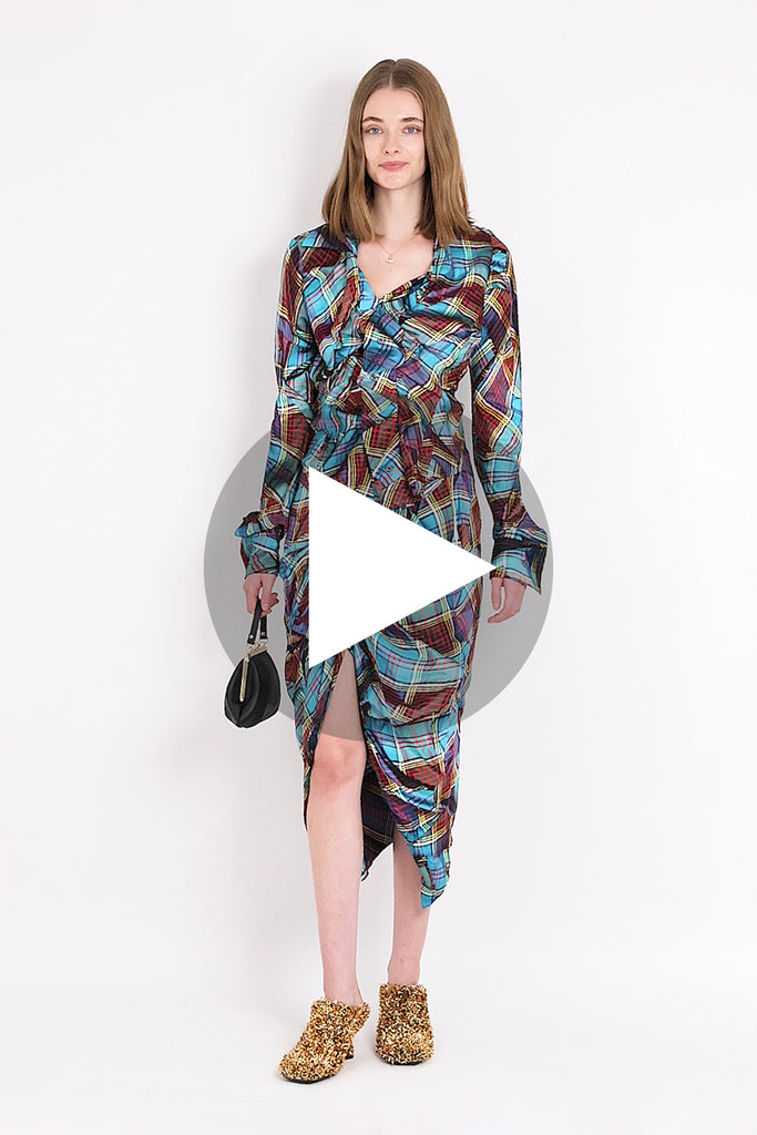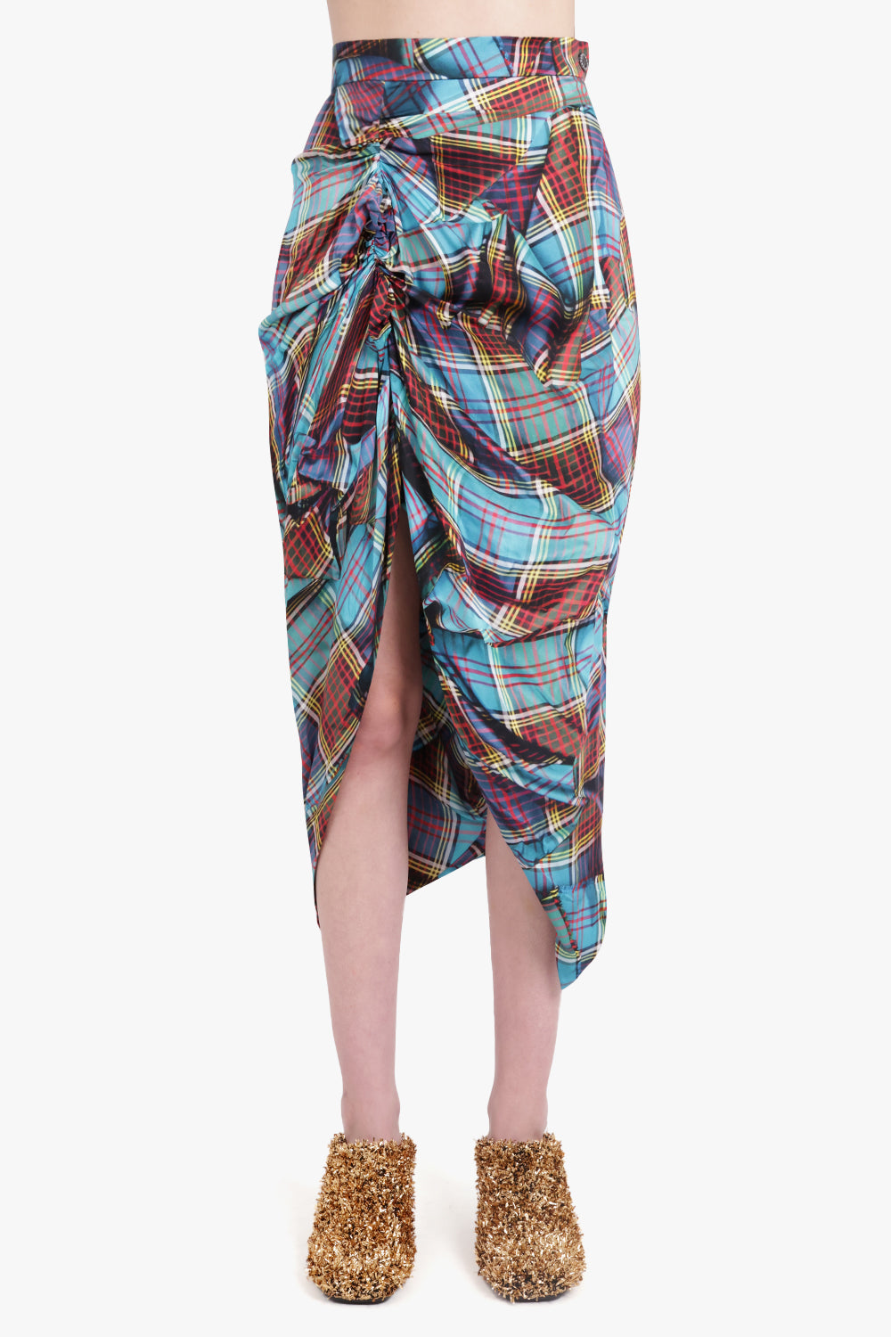 Side Panther Asymmetric Tartan Print Midi Skirt | Multi