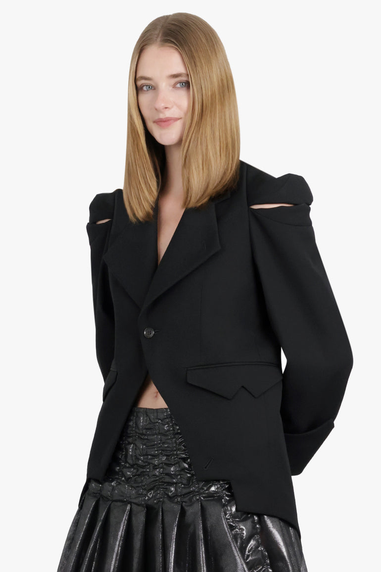 Single Breasted Crop Shoulder Slit Jacket | Black