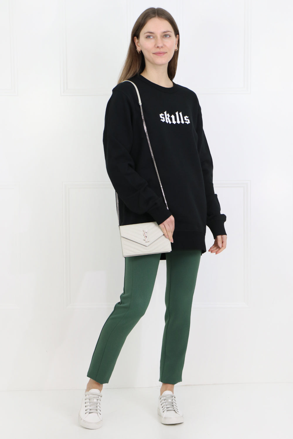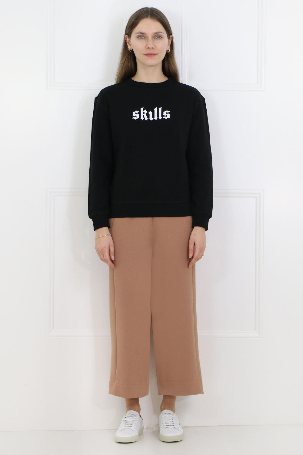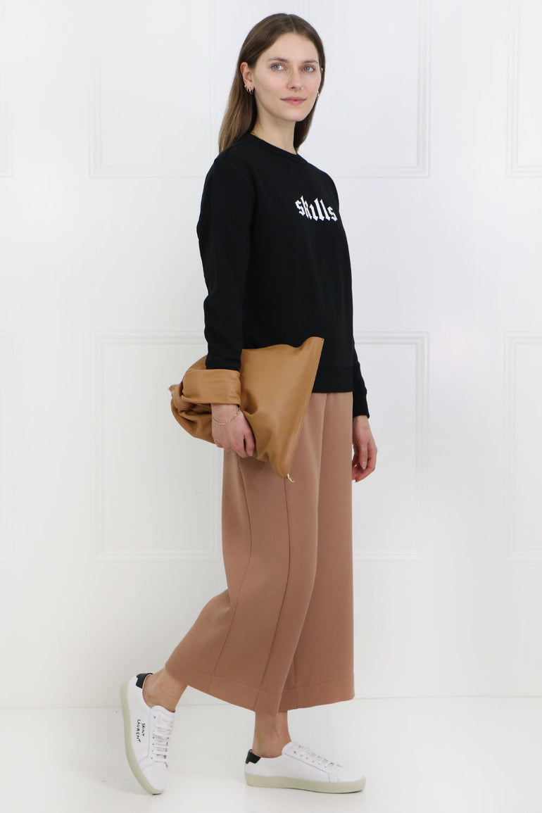 玛妮智能技巧毛衣是一个长袖的羊毛衣服,精美棉花。它具有前面和罗纹的技能打印。