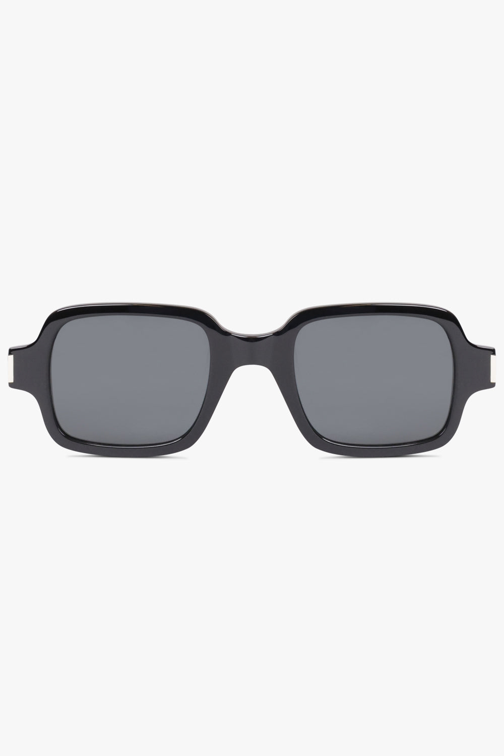 This pair of sunglasses features geometric square frames made of durable acetate and equipped with high-quality nylon lenses. The elegant design is completed with sophisticated Saint Laurent engraved temples and a sturdy metal hinge detail. Ensuring maximum eye protection, these frames offer 100% UVA/UVB protection and the option to add prescription lenses. Suitable for both men and women, these sunglasses have a stylish and versatile gender-neutral appeal.