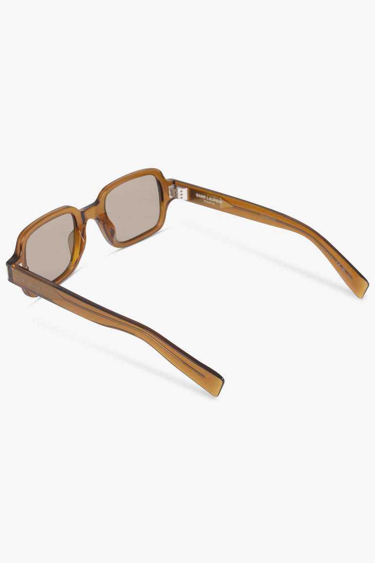 SAINT LAURENT ACCESSORIES BROWN / TRANSPARENT COGNAC BROWN/LIGHT BROWN SL 720 Geometric Square Frame Sunglasses | Brown