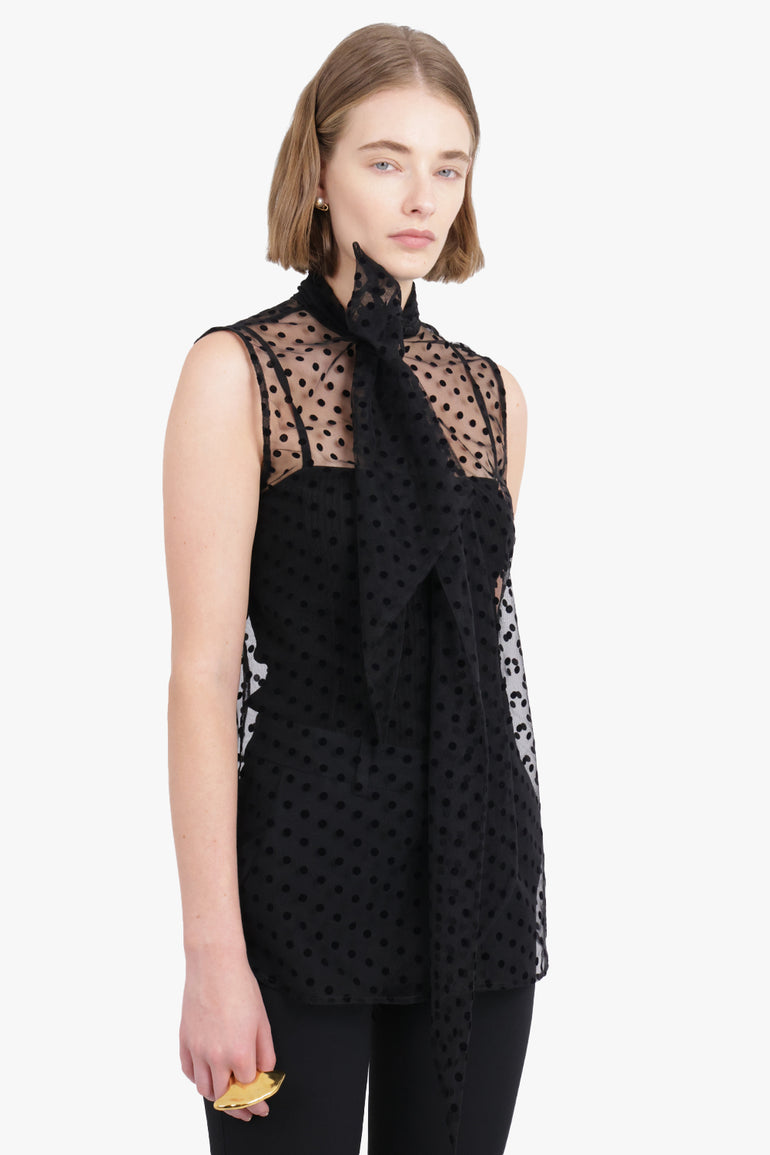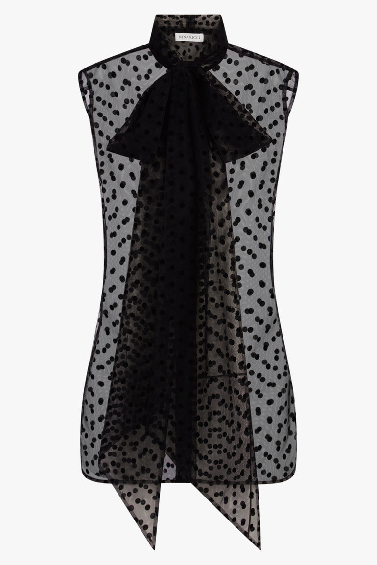 NINA RICCI RTW Sleeveless Polka-Dot Tulle Shirt With Neck Tie | Black