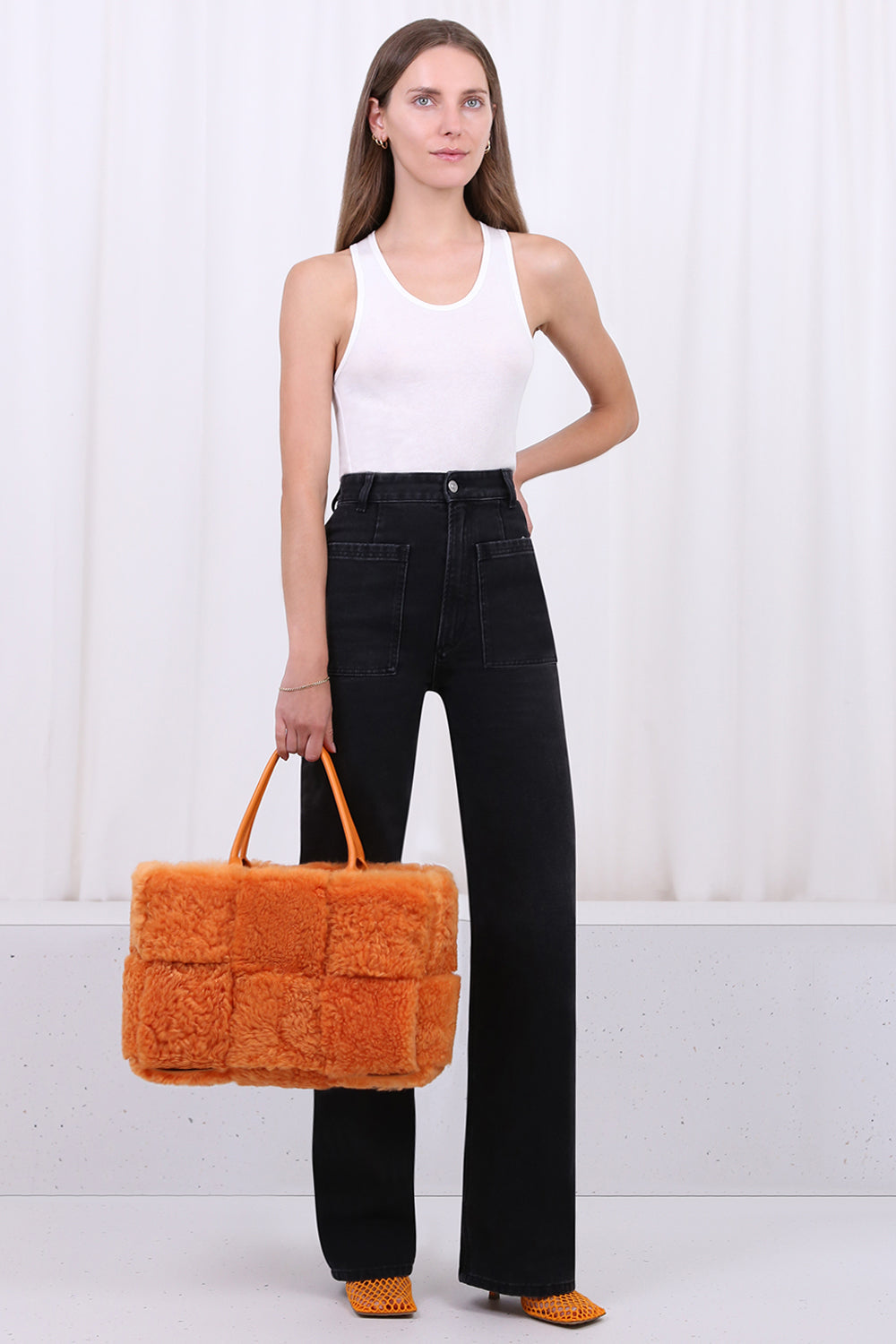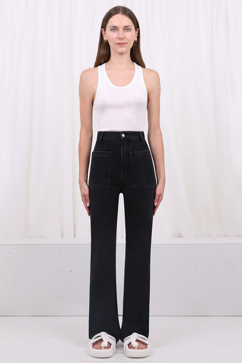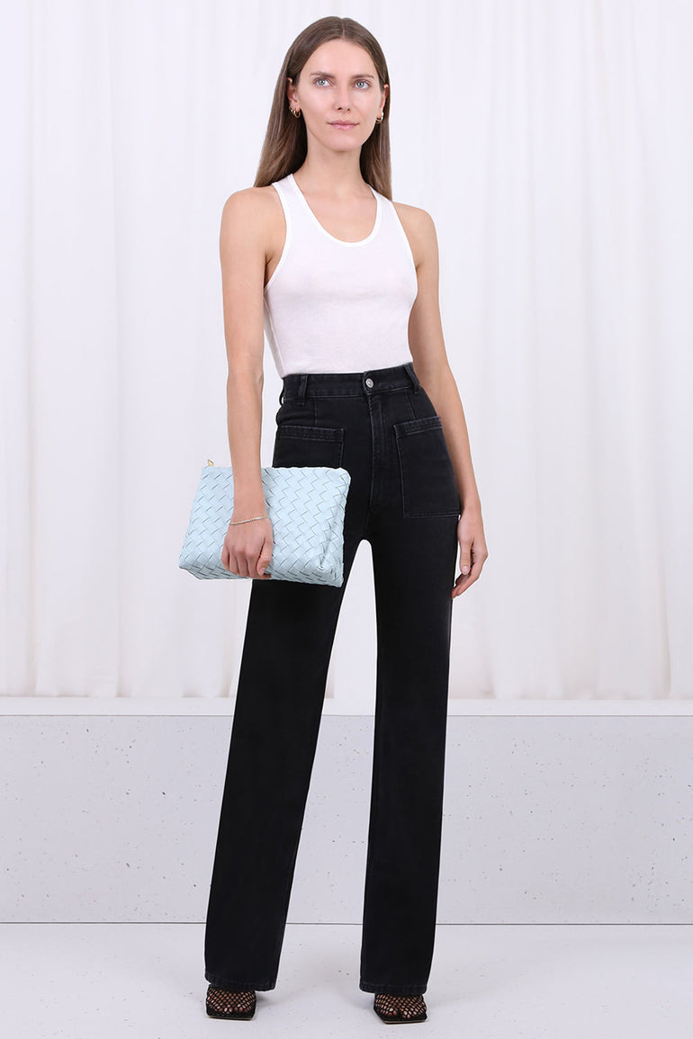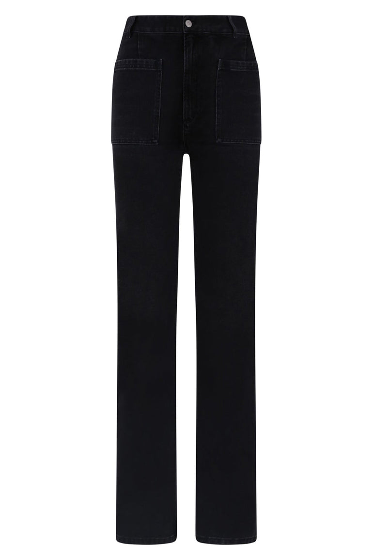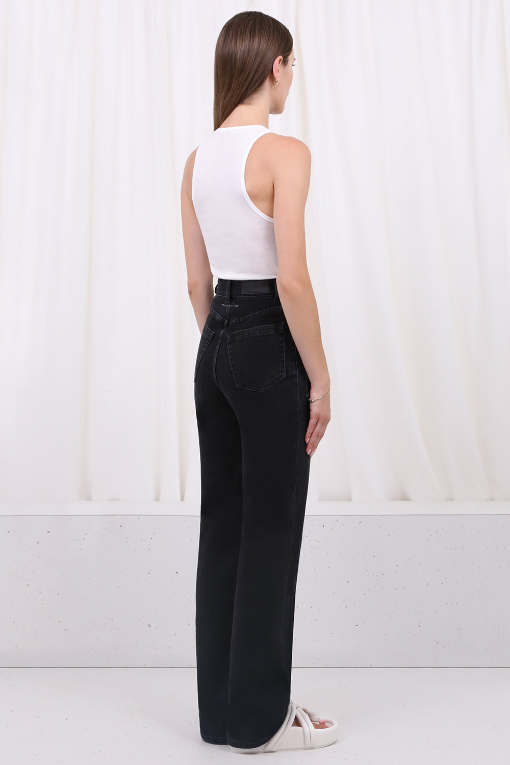 The MM6 By Maison Margiela Straight Leg Jeans are crafted from a cotton denim fabrication. These jeans feature belt loops, a front button and zipper closure and front and back pockets.