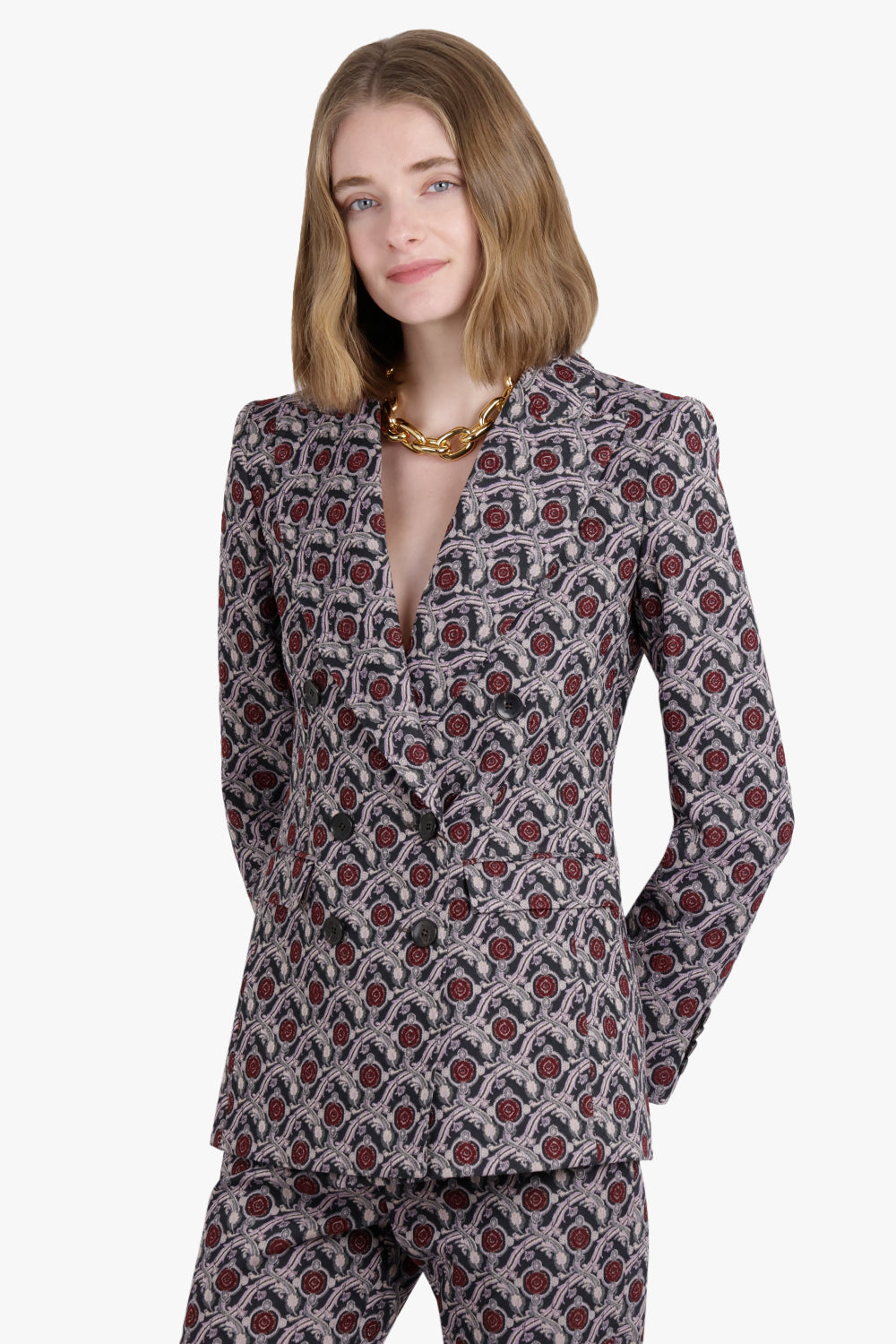 ETRO RTW Tapered Geometric Floral Print Trouser | Blue/Pink