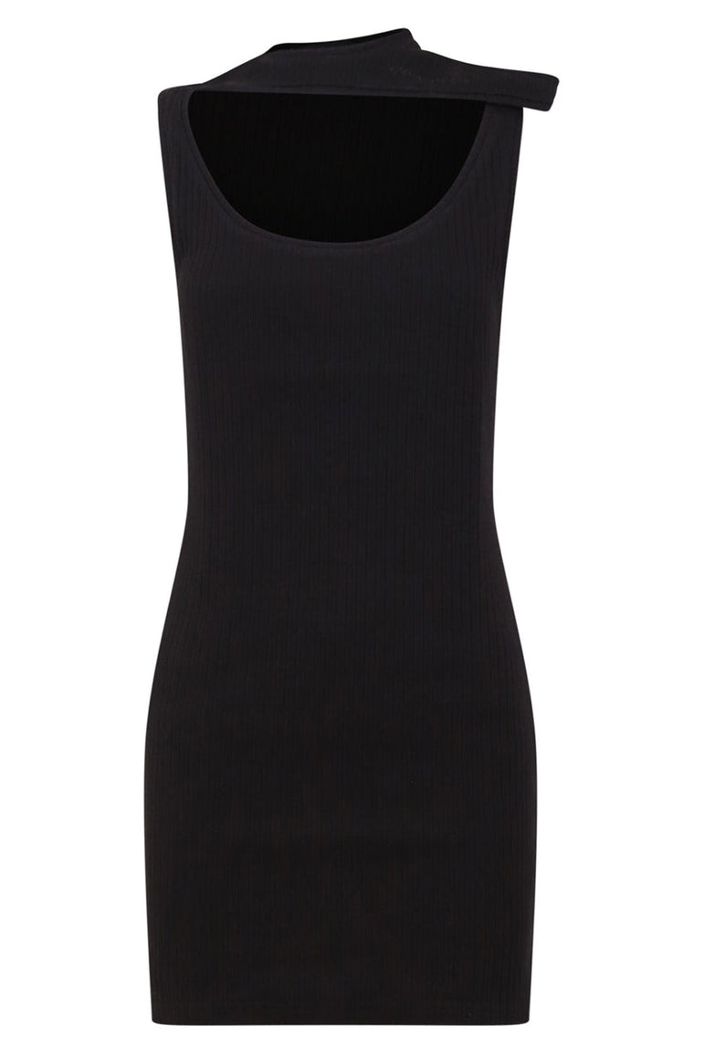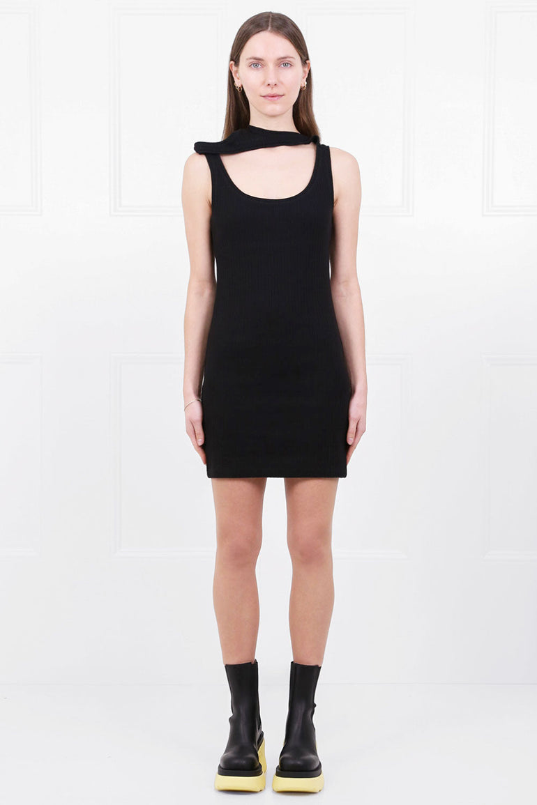 Y / PROJECT三款衣领迷你连衣裙S /较少的黑色是一款安装,罗纹,坦克服饰,由罗纹棉质织物制成。这件衣服有多种造型选项,拥有三个单独的领口,您可以通过领口,两到三个穿着衣服。