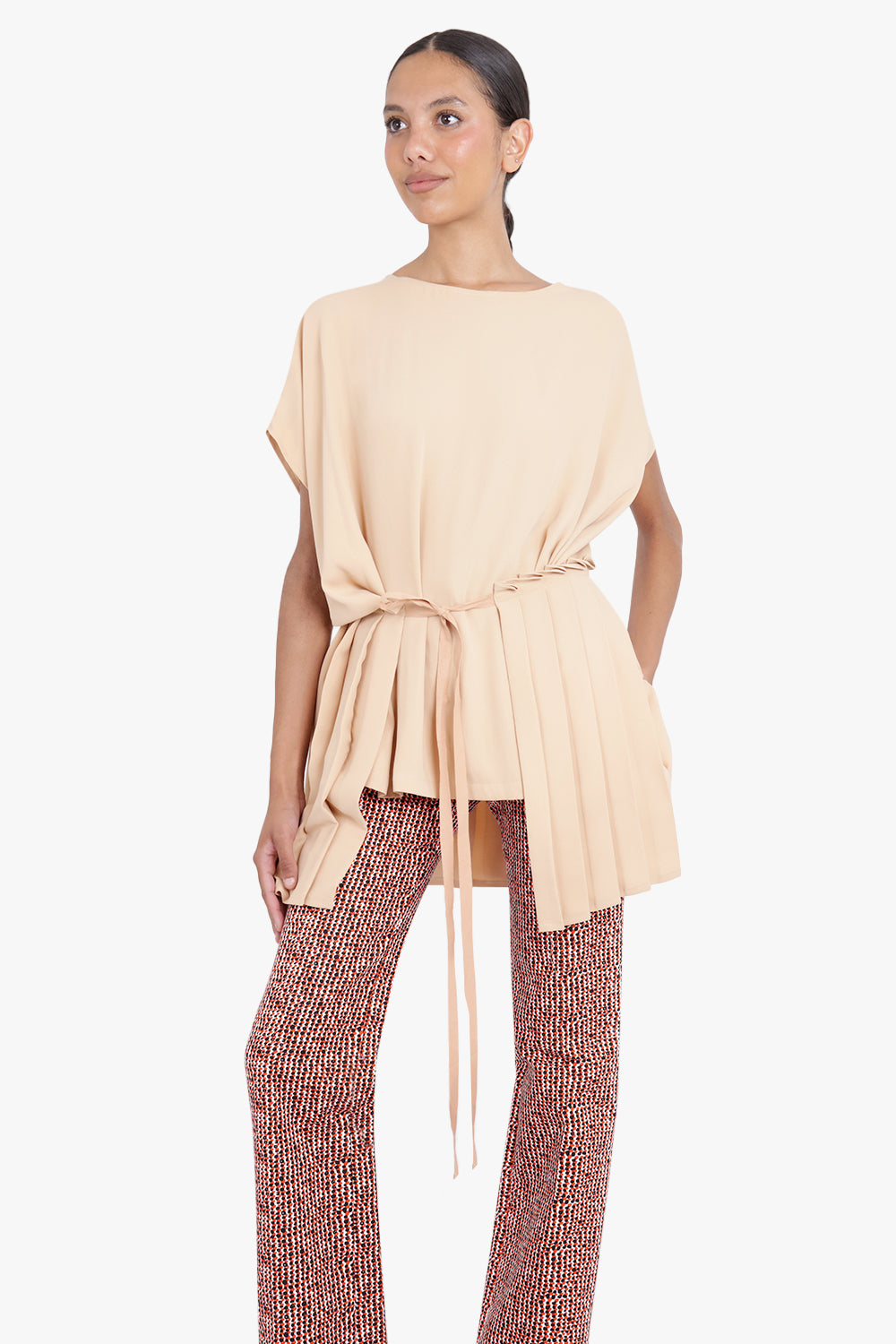 MM6由Maison Margiela Blouse是一个短袖绑在流体聚酯面料中的褶皱衬衫。