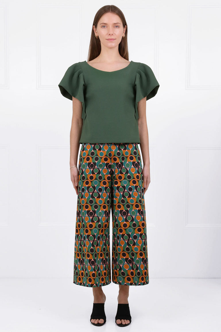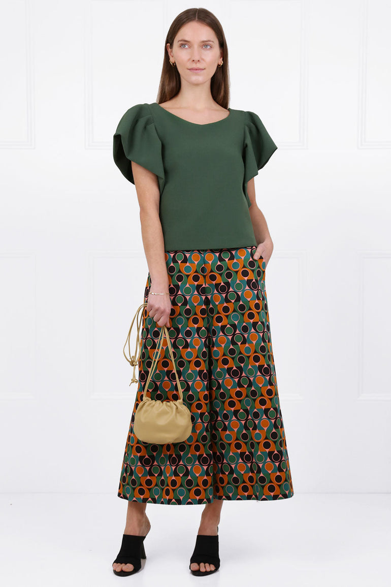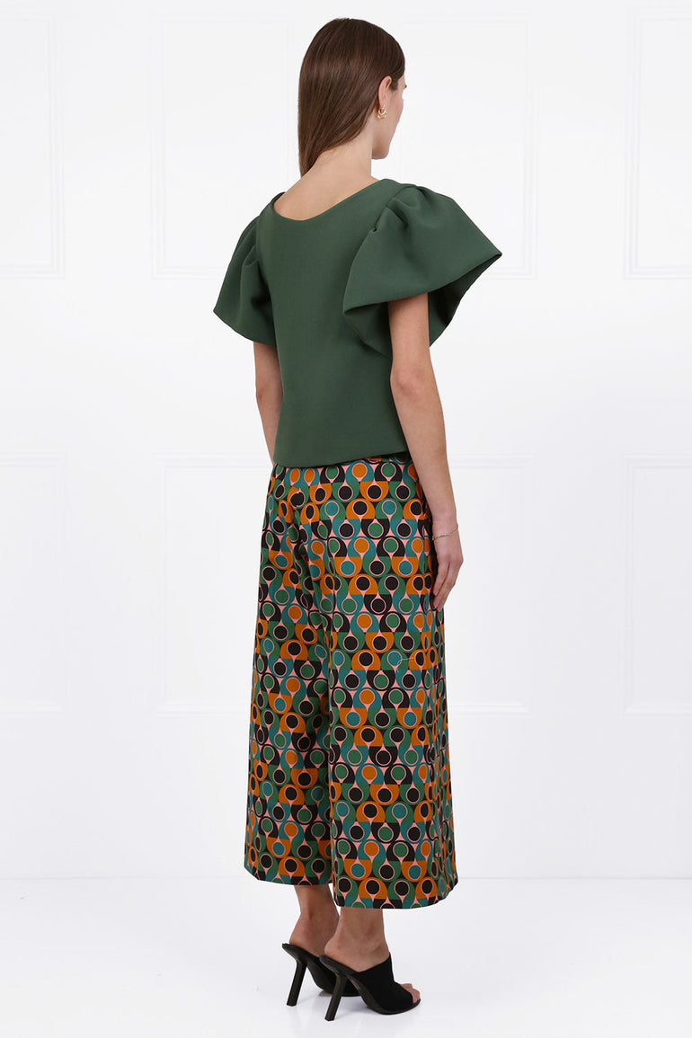 MAISON POI RTW TISSUE CROP TOP WITH PUFF SLEEVE KHAKI