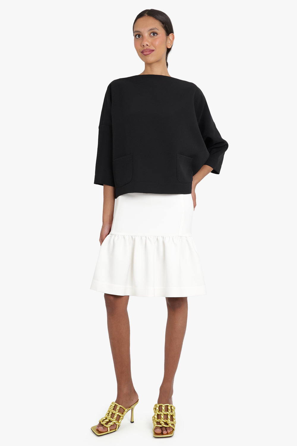 MAISON POI RTW TISSUE MIDI PEPLUM SKIRT IVORY
