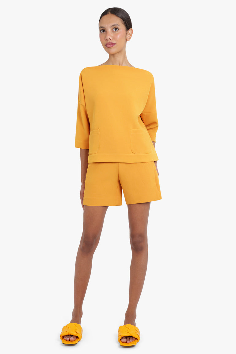 Maison Poi完美的短裤是专业切割的宽松贴合,它具有弹性腰带。