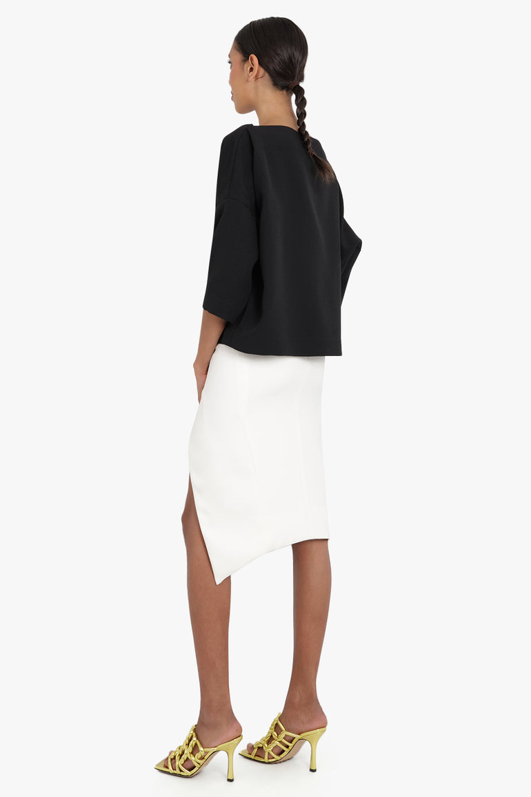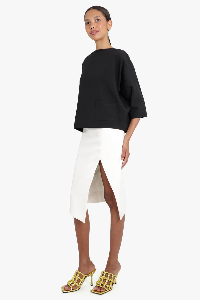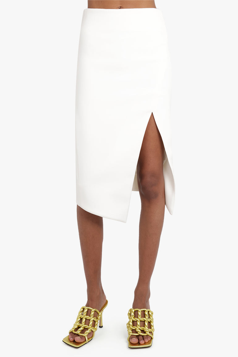 Maison Poi拆分铅笔裙是一款铅笔裙式风格,旨在坐在臀部上方。它具有拟合的轮廓,分裂不对称下摆。