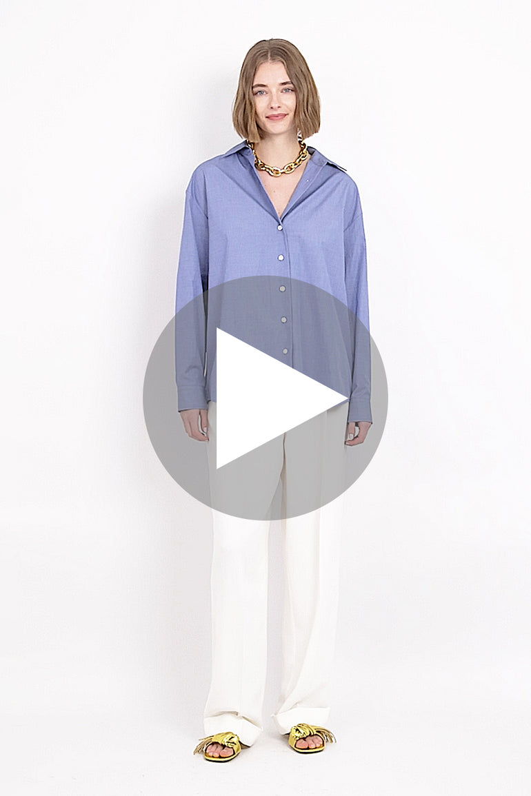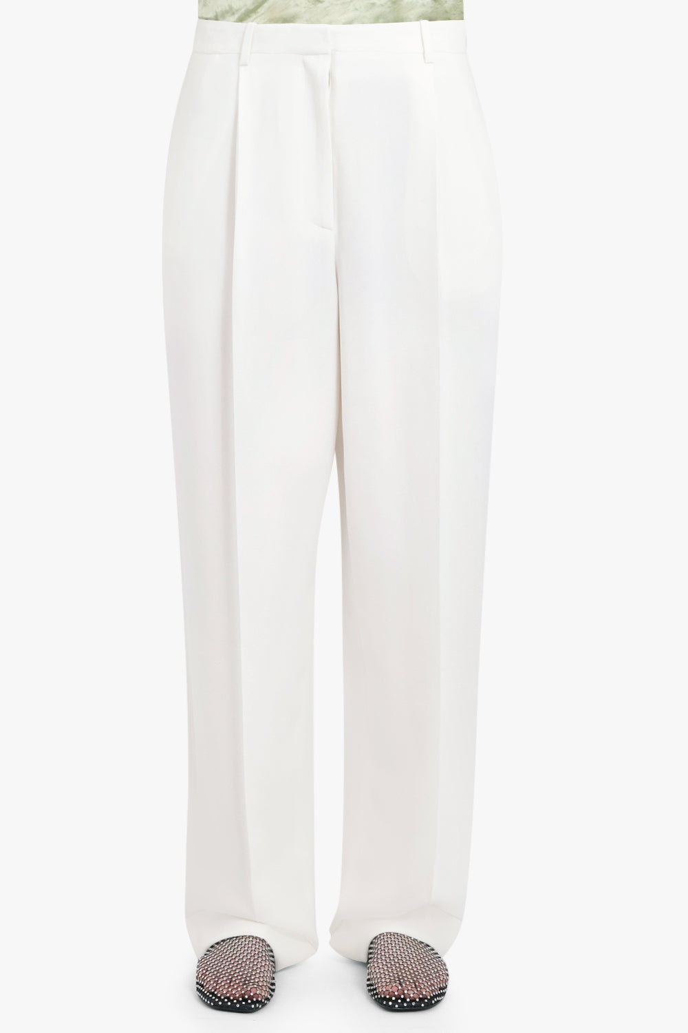Menswear-inspired tailored pant in lightweight viscose cady with pressed front crease, cuffed hem, and back besom pockets.