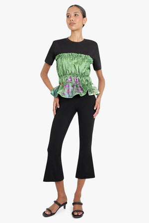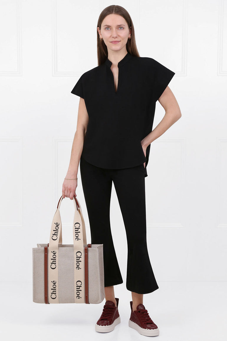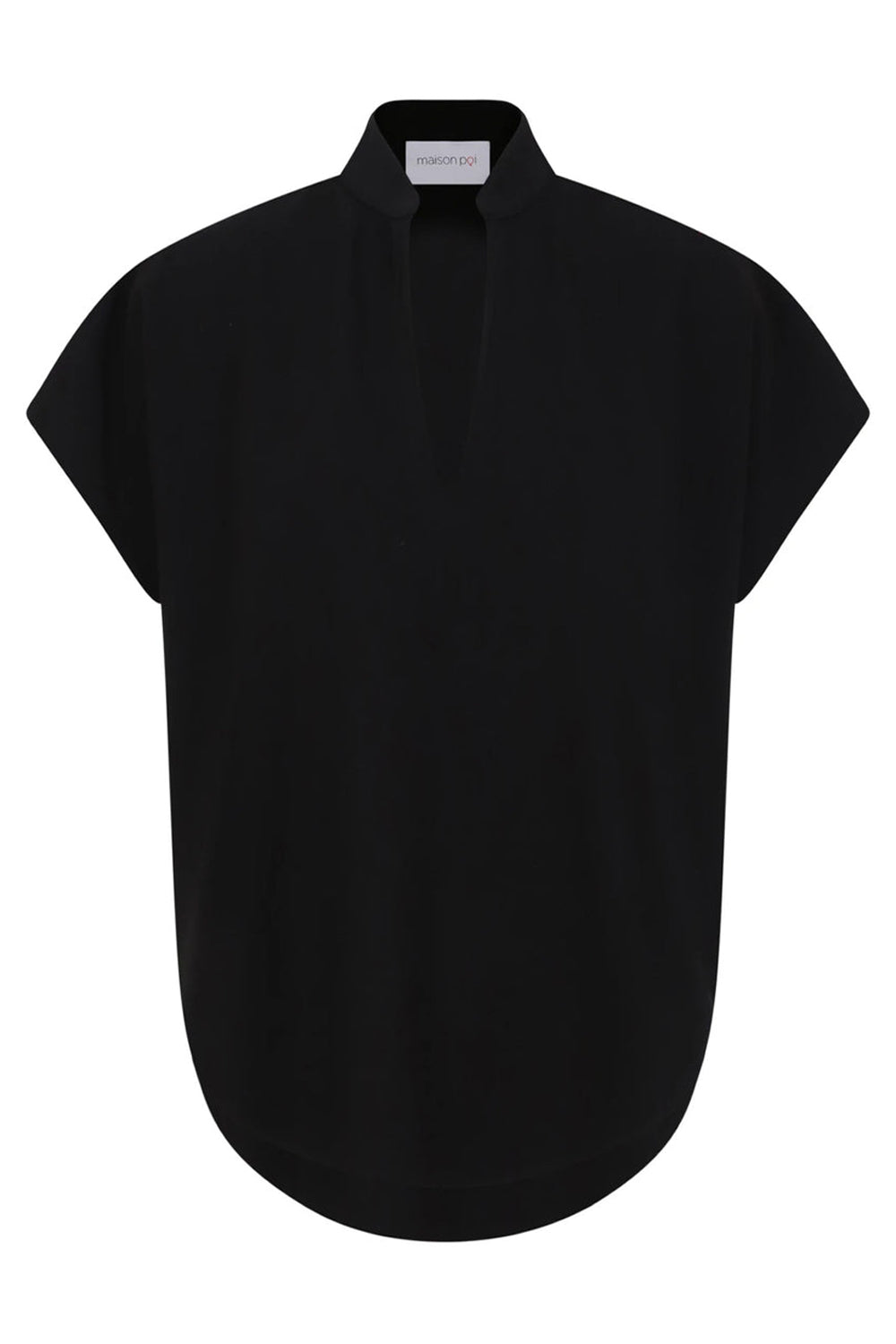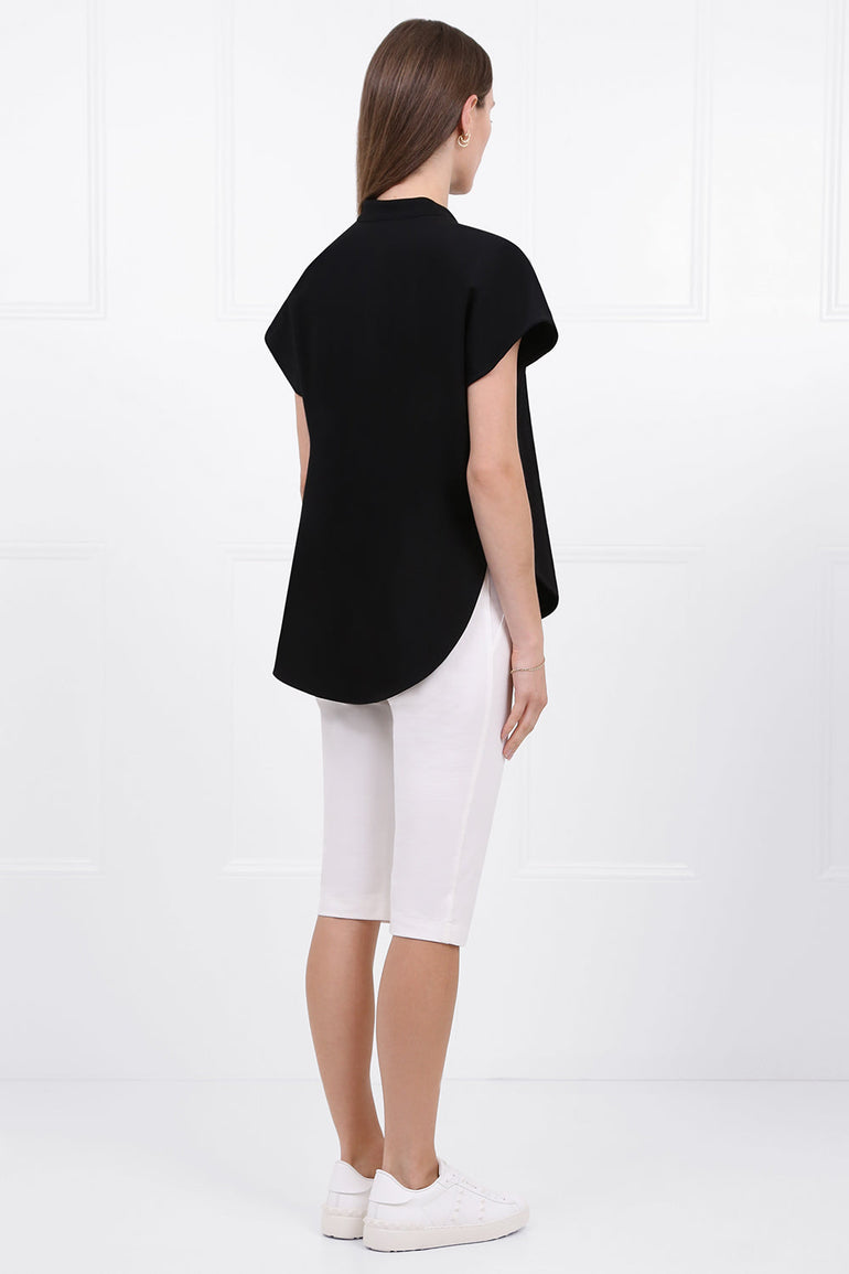 黑色的Maison Poi Tousjour Nuru顶部由伸展制造和圆盖袖,分裂领带和圆形下摆制成。