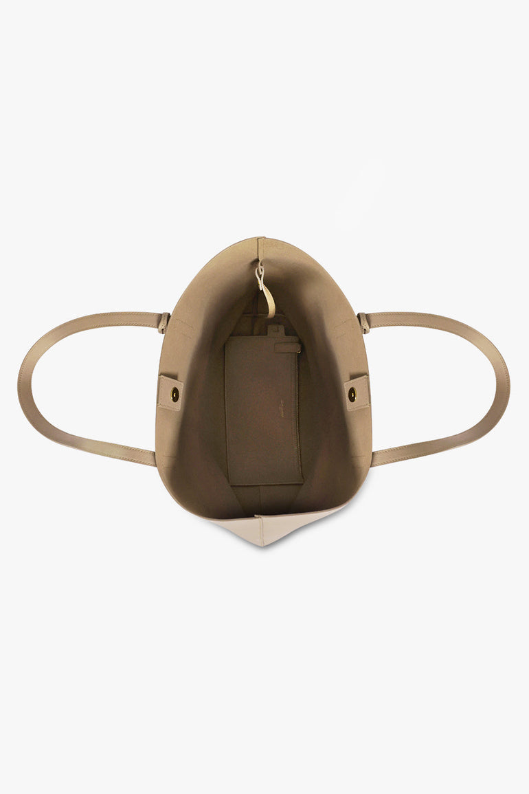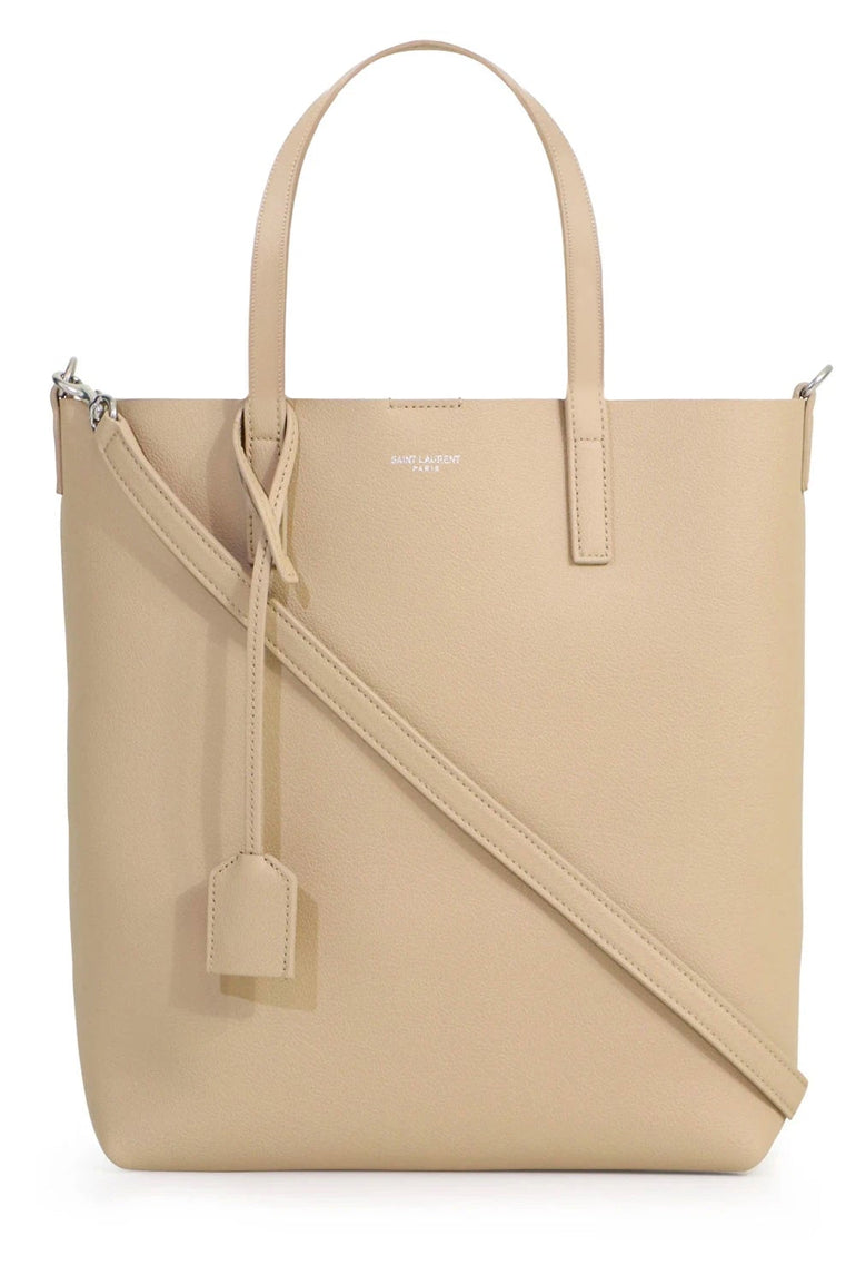 Saint Laurent玩具南方购物手提包由柔软的小牛皮皮革制成。它具有YSL标识。
