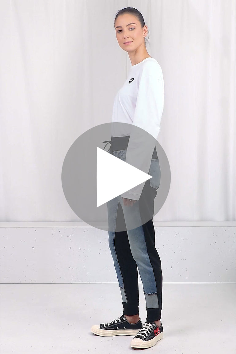 Comme desGarçons扮演X Converse Chuck Taylor低顶运动鞋黑色被制作从经典的红色帆布面料制成,侧面有一半的红色心脏标志。这个运动鞋采用白色的鞋底和脚趾保险杠,带有白色鞋带,对比白色缝合。